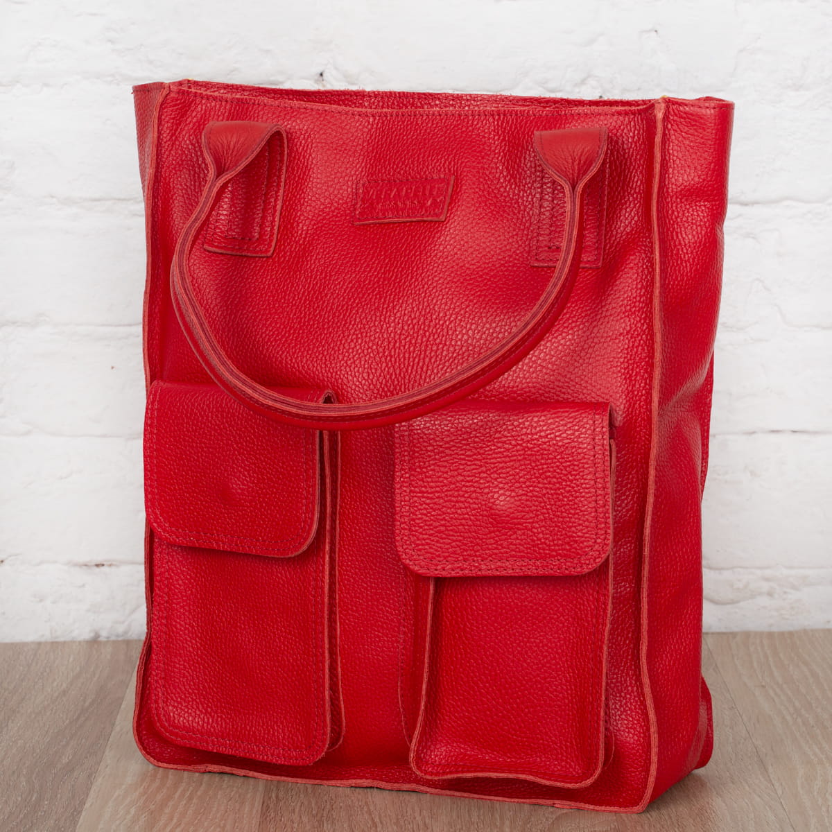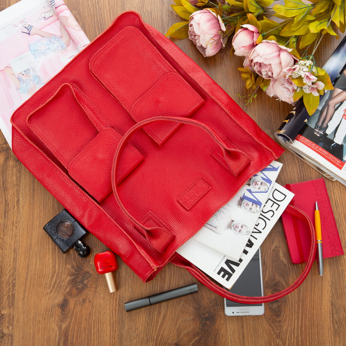 Duża Shopperka Torba Skórzana Vezze Tasca Czerwona-VEZ055-R