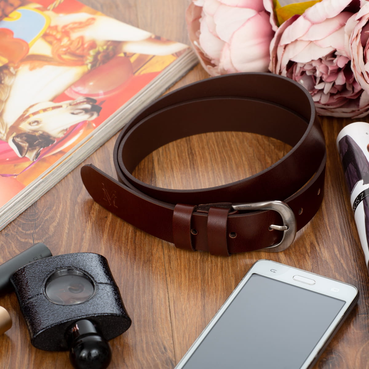 Elegancki pasek damski w całości wykonany z naturalnej skóry licowej.