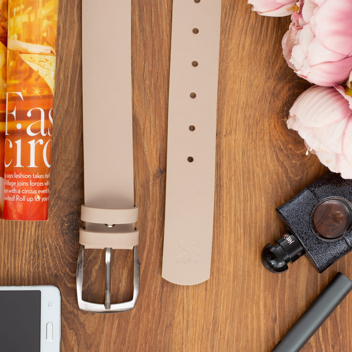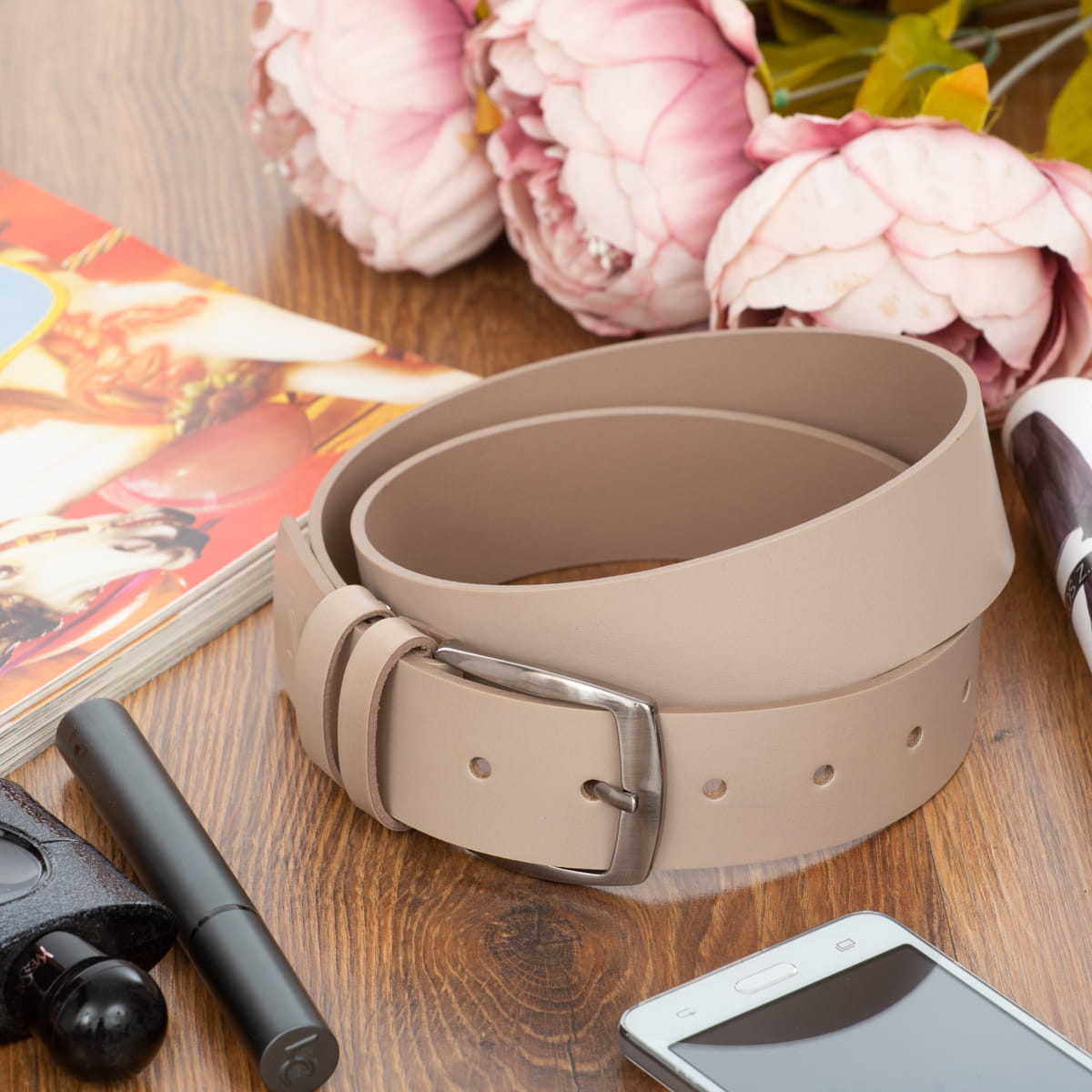 Klasyczny Pasek Damski VerMari Skórzany Jasny Beż 4 cm-VRMB38W01-BE1S