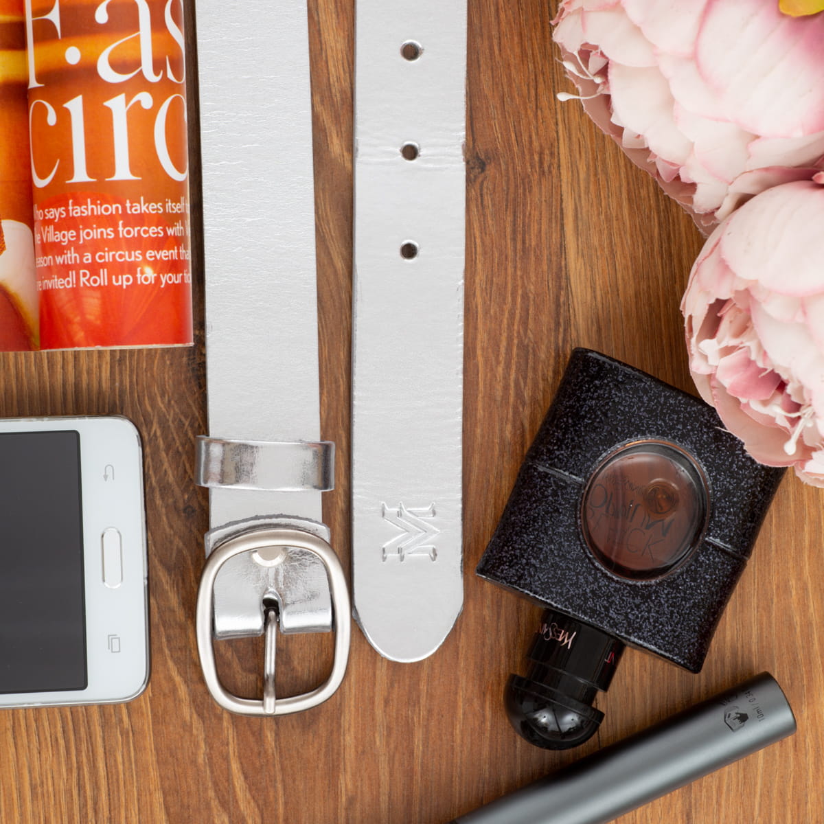 Klasyczny Pasek Damski VerMari Skórzany Srebrny Blask 3 cm-VRMB28W02-SSH1S