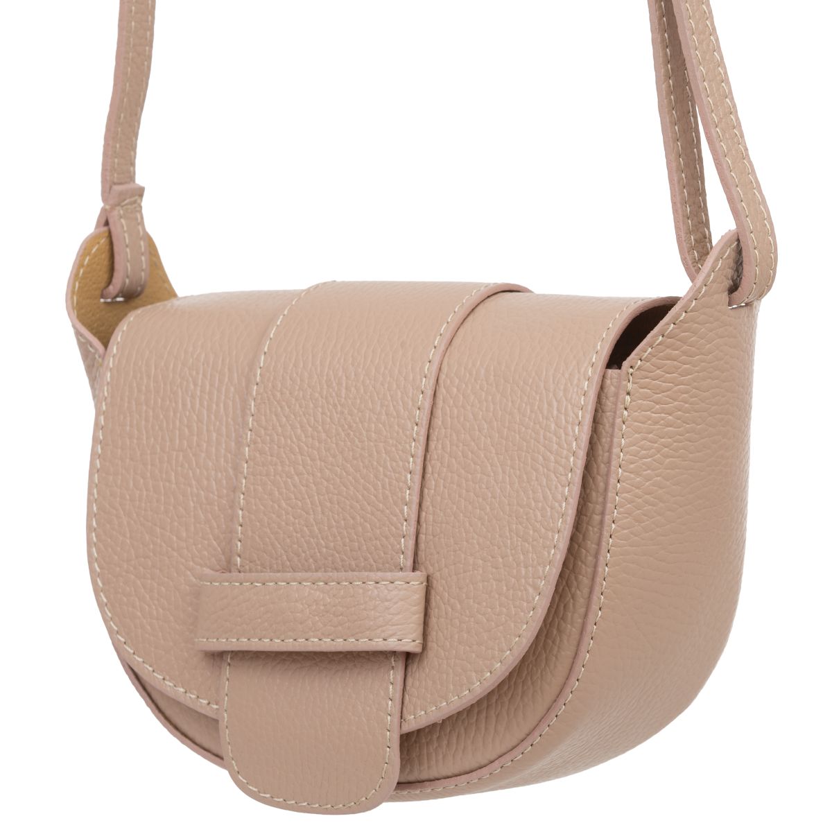 Mała torebka wykonana z wysokogatunkowej skóry licowej. Skóra została wykończona w taki sposób aby zachować jej naturalną fakturę. Jest przystosowana do noszenia na ramieniu.