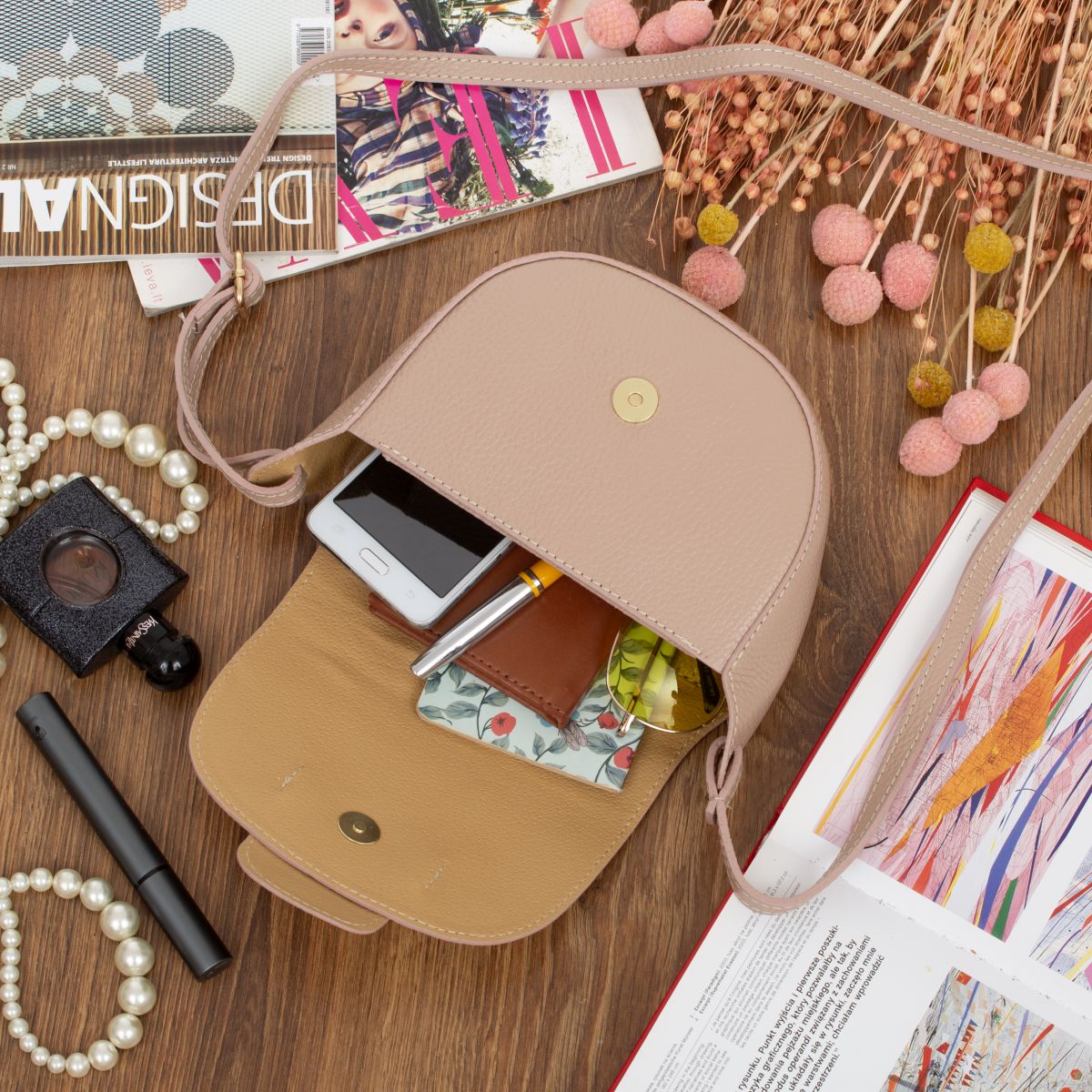 - skórzana klapa z zatrzaskiem magnetycznym