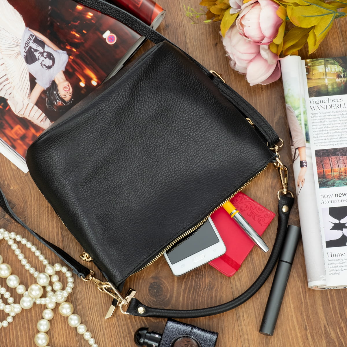 Mała torebka wykonana z wysokogatunkowej, włoskiej skóry licowej. Skóra została wykończona w taki sposób aby zachować jej naturalną fakturę. Jest przystosowana do noszenia w ręku lub na ramieniu.