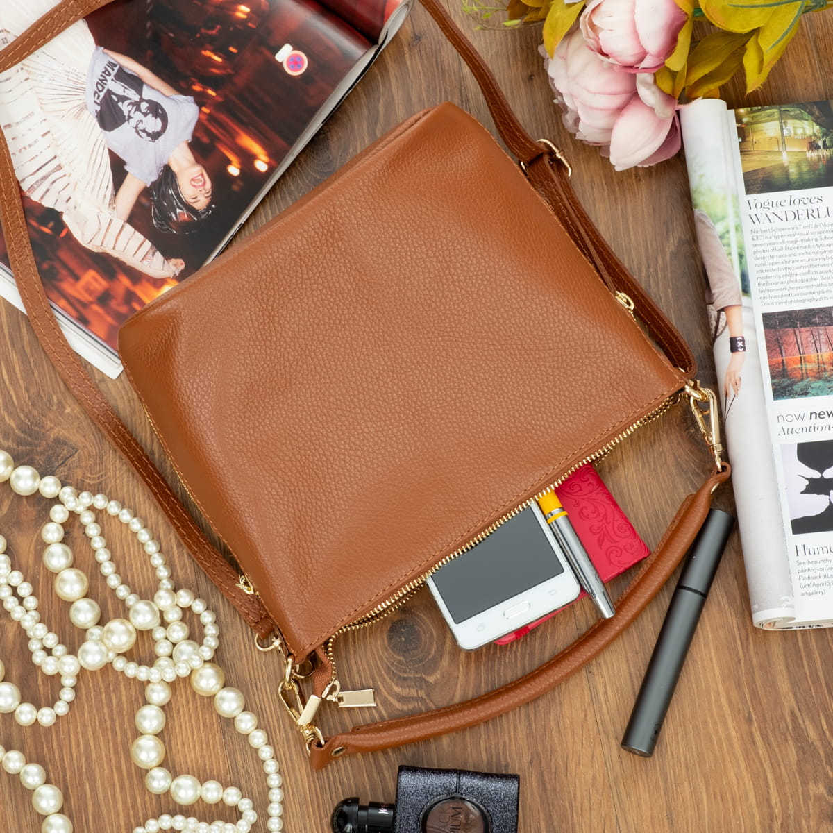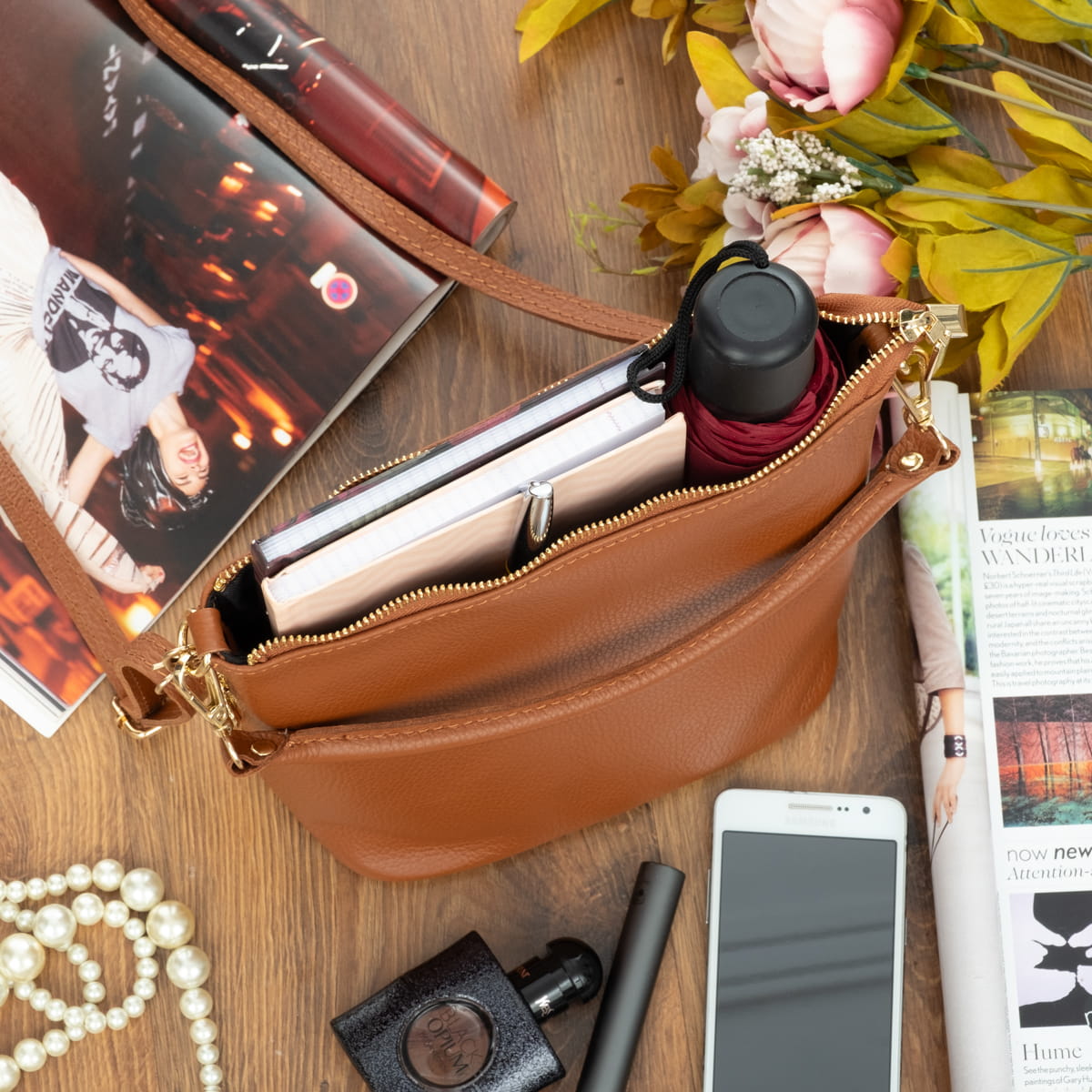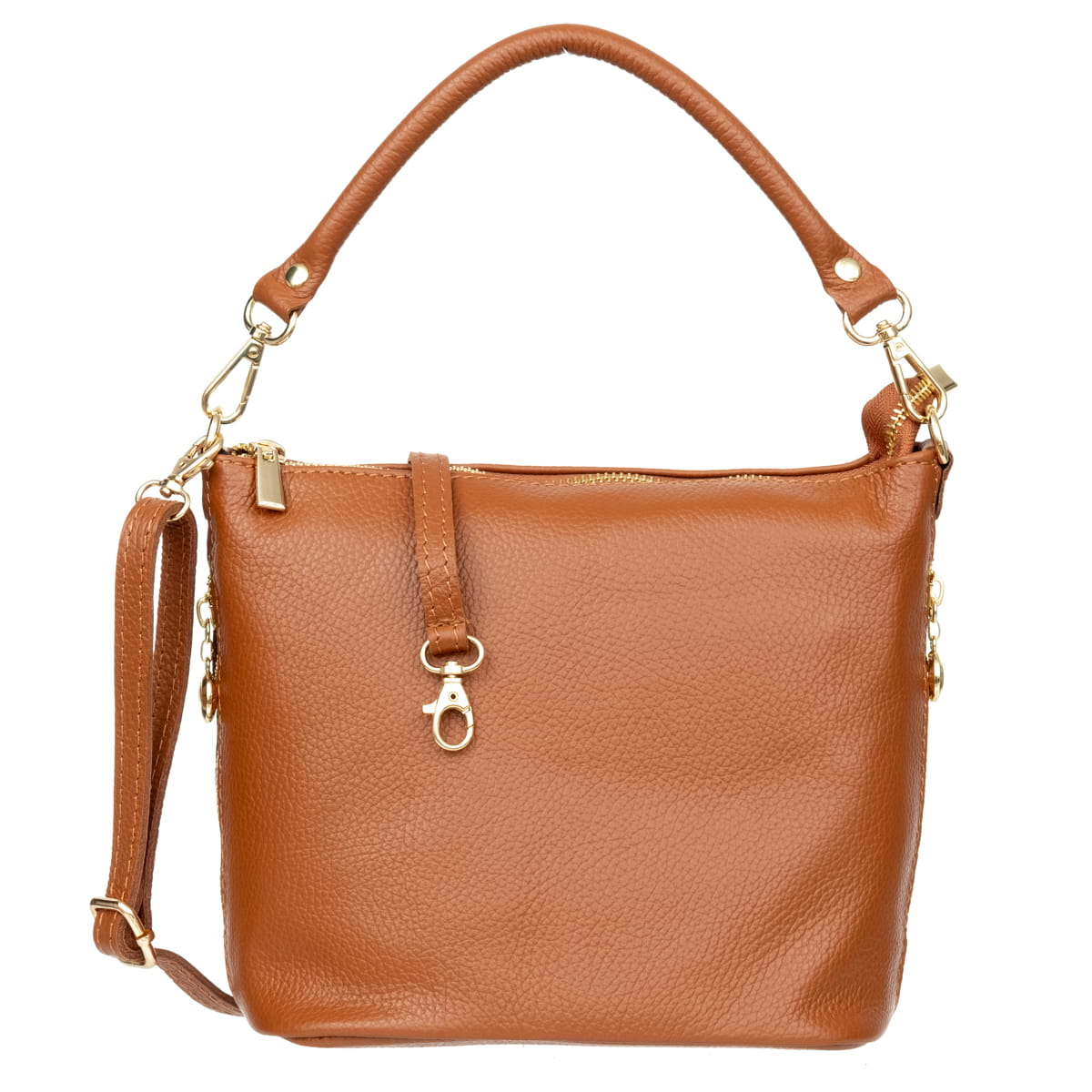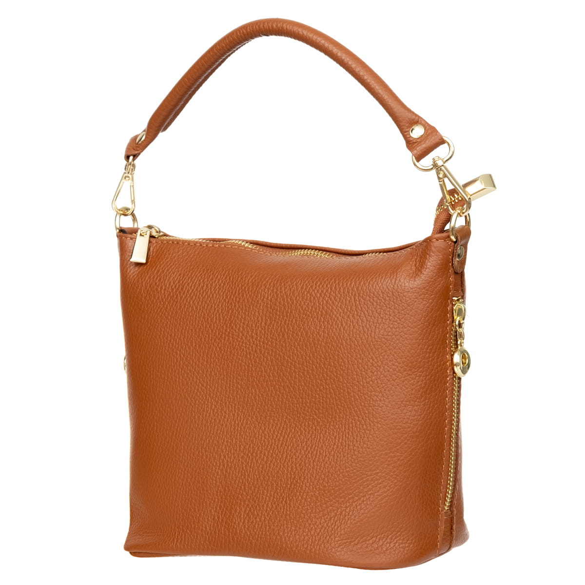 Mała torebka wykonana z wysokogatunkowej, włoskiej skóry licowej. Skóra została wykończona w taki sposób aby zachować jej naturalną fakturę. Jest przystosowana do noszenia w ręku lub na ramieniu.