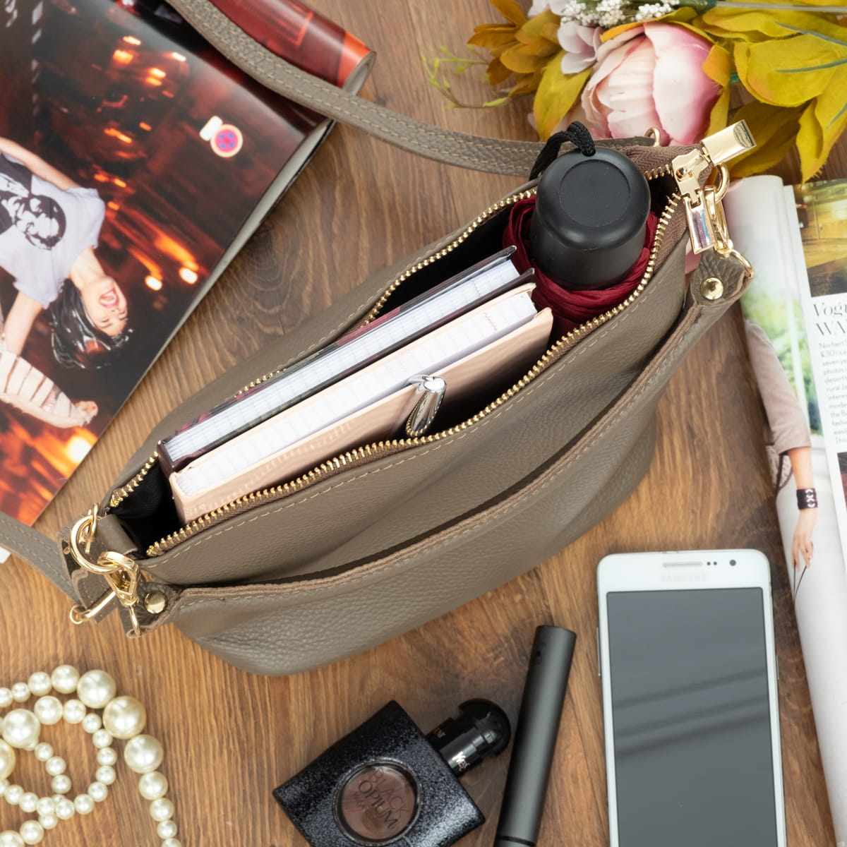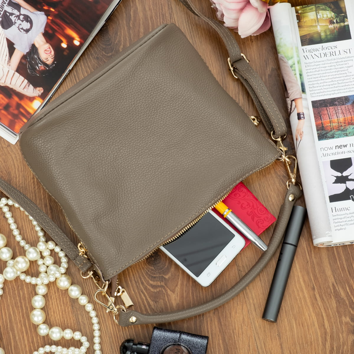 Mała Torebka Damska Skórzana Vezze Molla Taupe-VEZ070-T