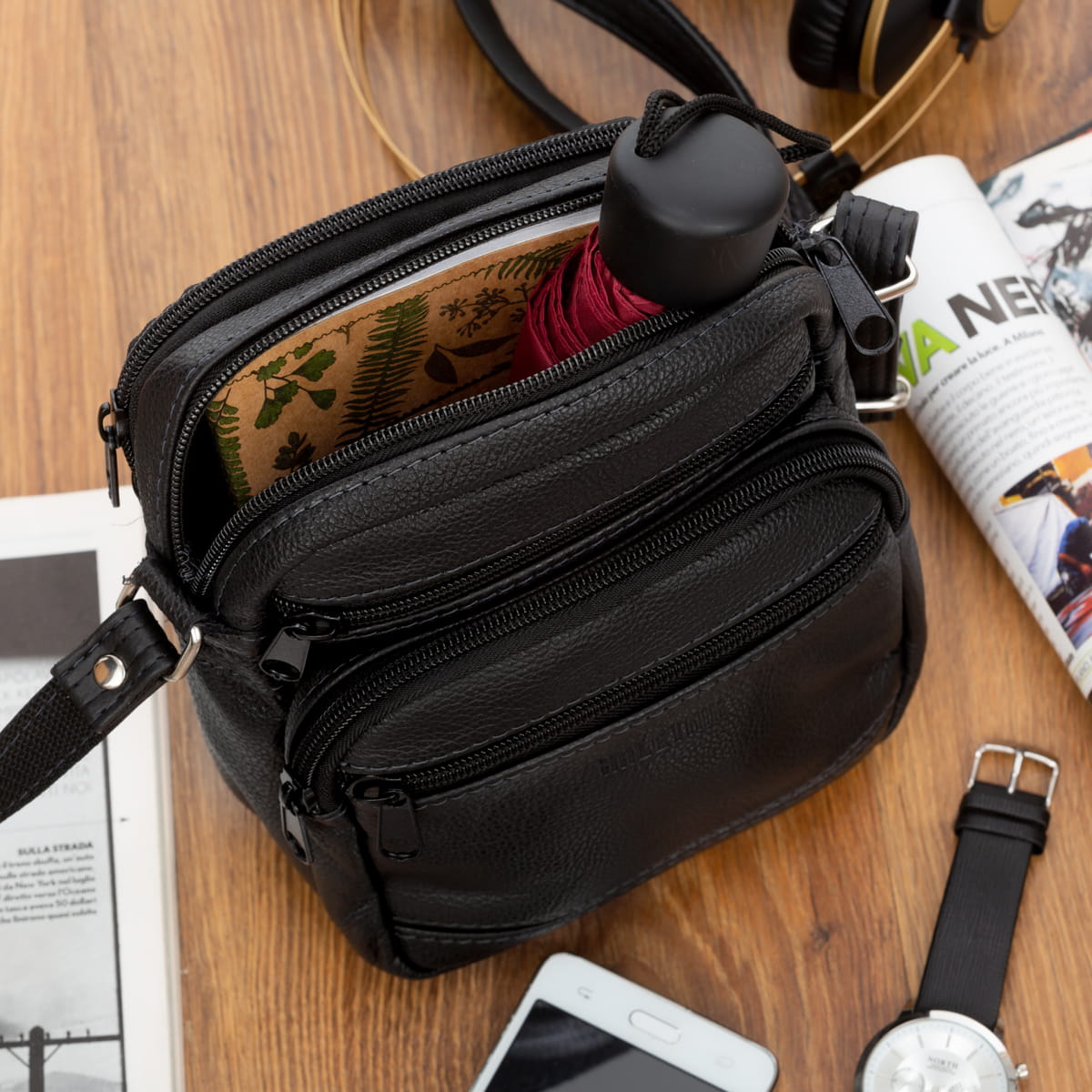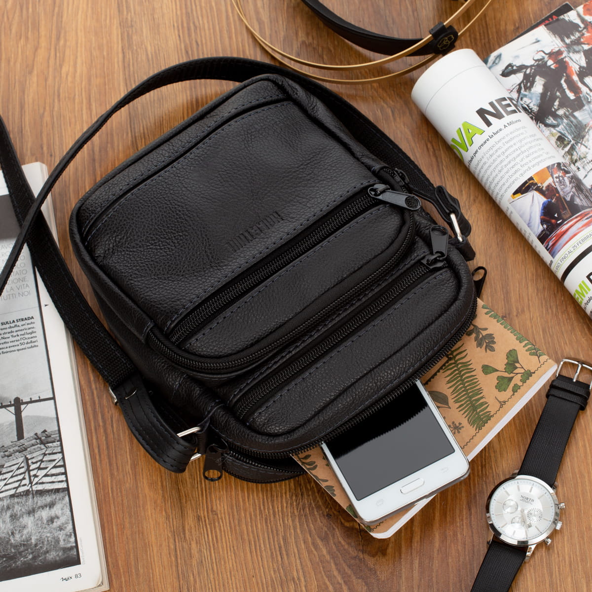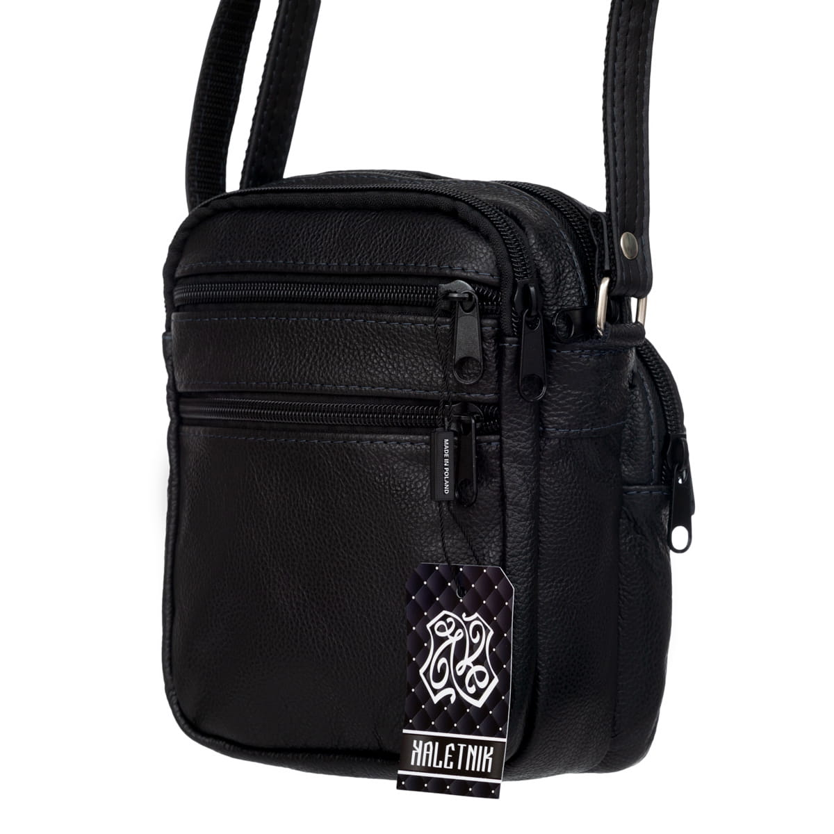 Mała męska torebka Kaletnik Orszak wykonana z naturalnej skóry licowej. Trzy komory oraz pięć kieszeni w różnych rozmiarach pozwala wygodnie posegregować rzeczy w torebce. Przystosowana do noszenia na ramieniu.