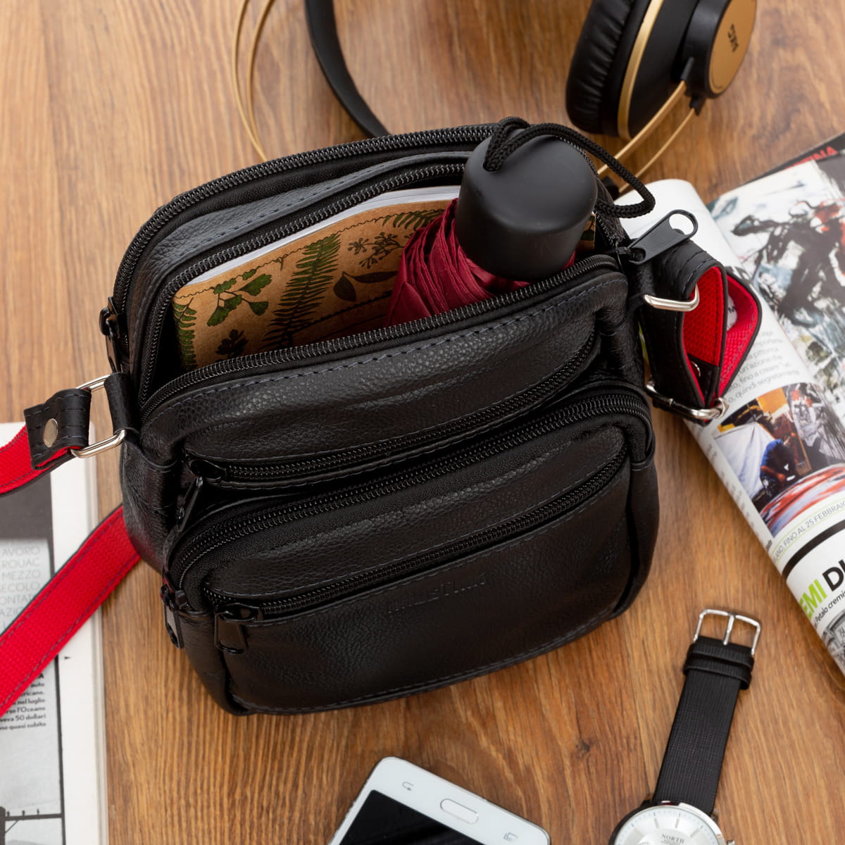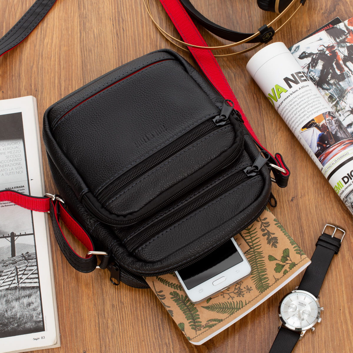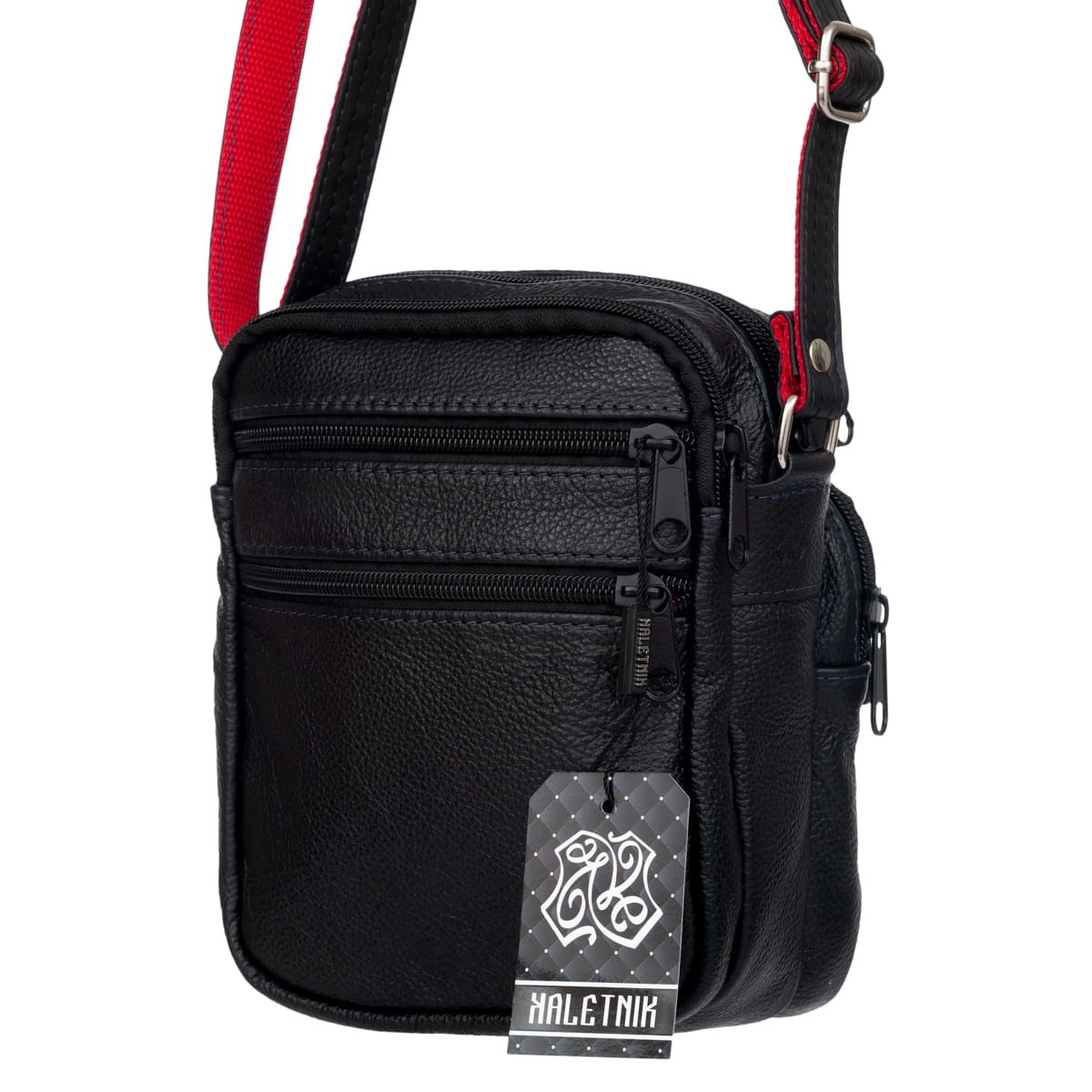 Mała męska torebka Kaletnik Orszak wykonana z naturalnej skóry licowej. Trzy komory oraz pięć kieszeni w różnych rozmiarach pozwala wygodnie posegregować rzeczy w torebce. Przystosowana do noszenia na ramieniu.