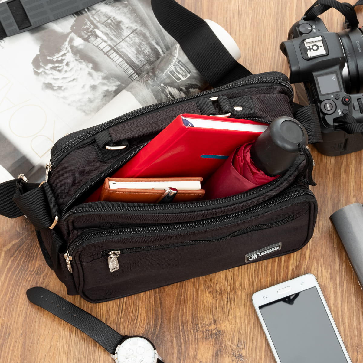 Solidna i poręczna torba do codziennego użytku. Wykonana z wytrzymałego i nieprzemakalnego nylonu. Długość paska na ramię można regulować według własnych preferencji.