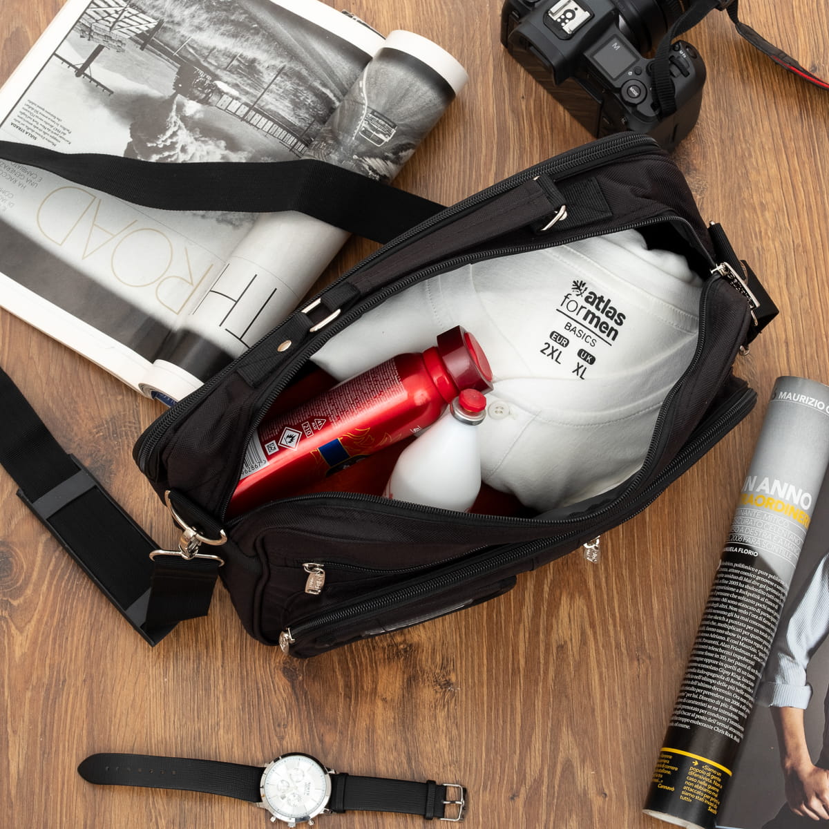 Solidna i poręczna torba do codziennego użytku. Wykonana z wytrzymałego i nieprzemakalnego nylonu. Długość paska na ramię można regulować według własnych preferencji.