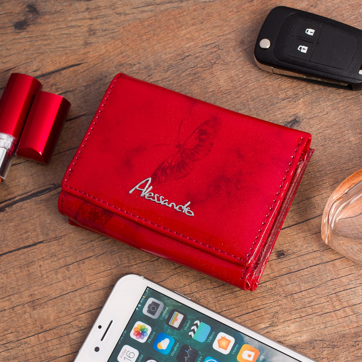 Portfel damski Skórzany Alessandro Paoli Farfalla Rosso-AP6719-R
