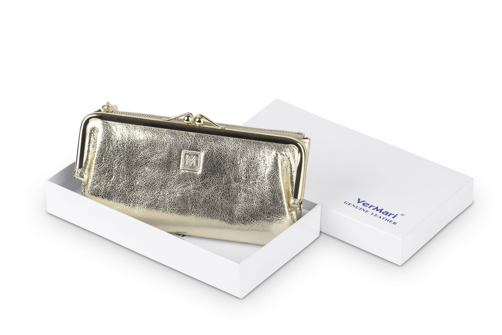 - wytłoczone logo VerMari na froncie portfela