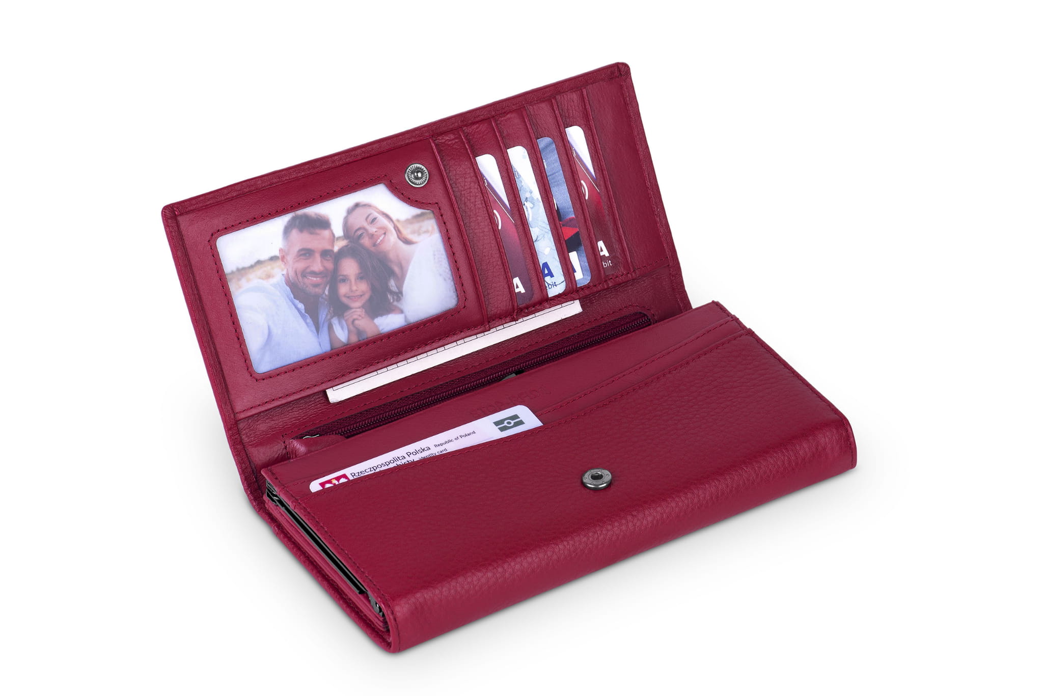 - część z jedenastoma kieszonkami na karty lub dokumenty zamykana na zatrzask