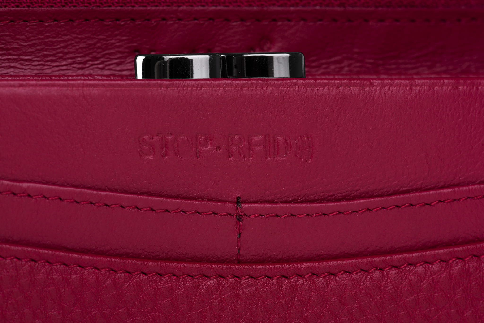 RFID STOP to system, który chroni karty płatnicze noszone w portfelu. To specjalne zabezpieczenie w ścianie portfela blokuje czytniki zbliżeniowe. Uniemożliwia to pobranie pieniędzy z karty bez Twojej zgody.