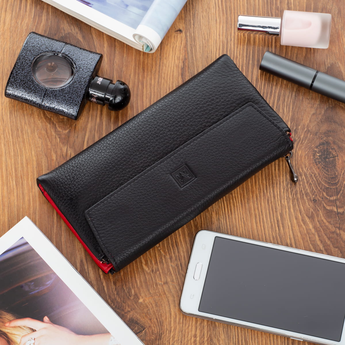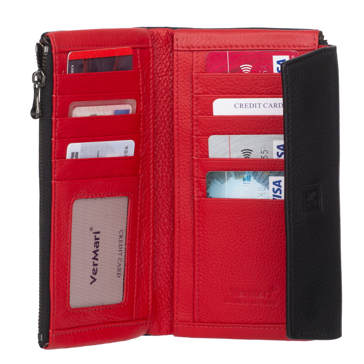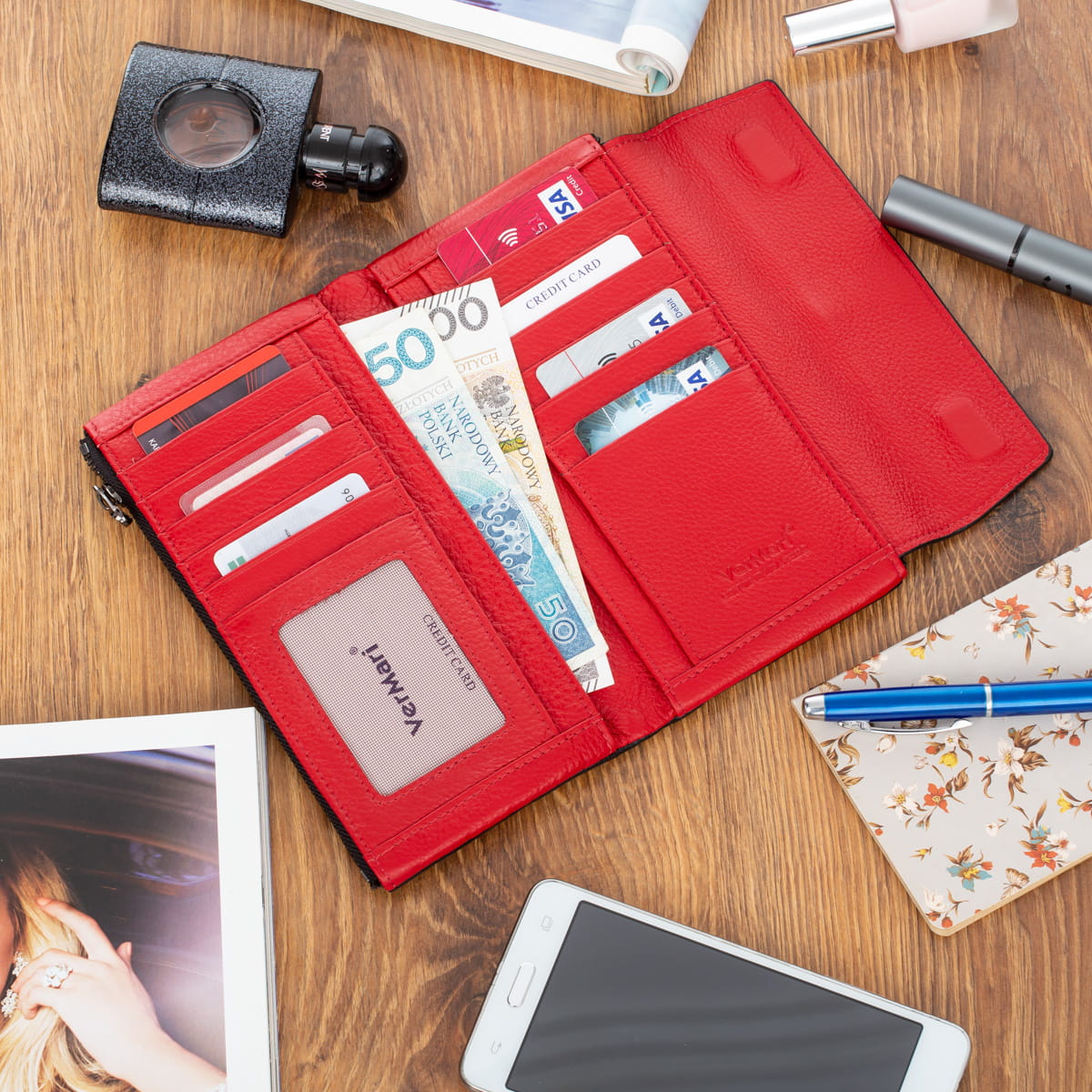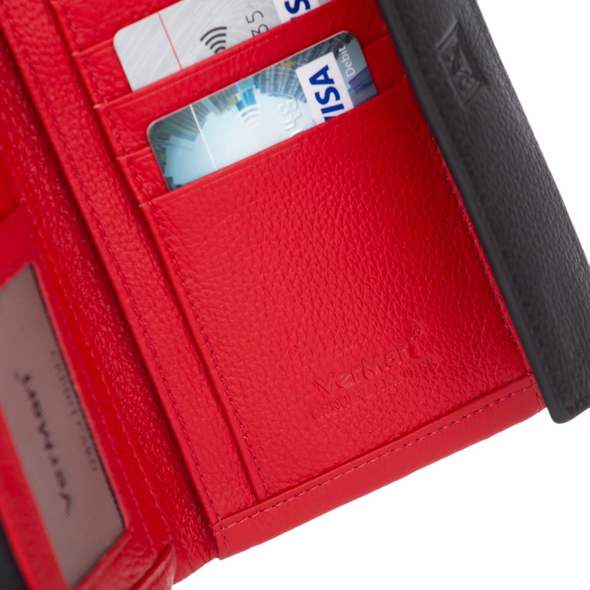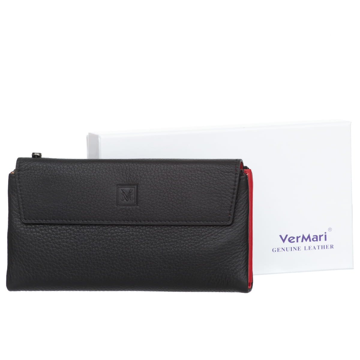 - wytłoczone logo VerMari na froncie portfela