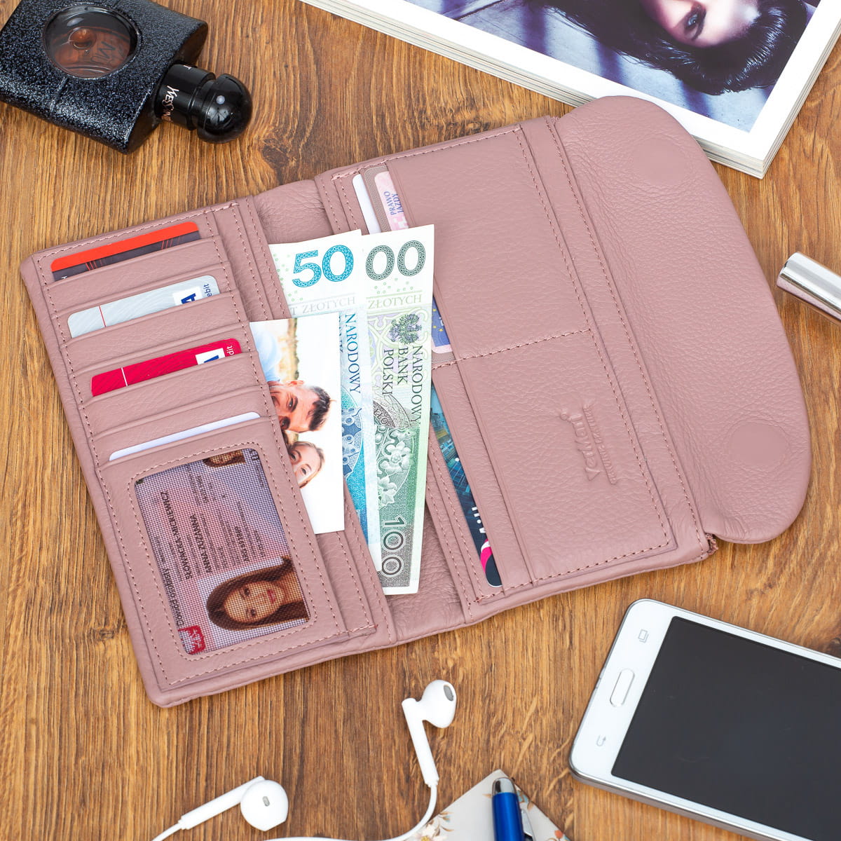 - pięć kieszeni na banknoty