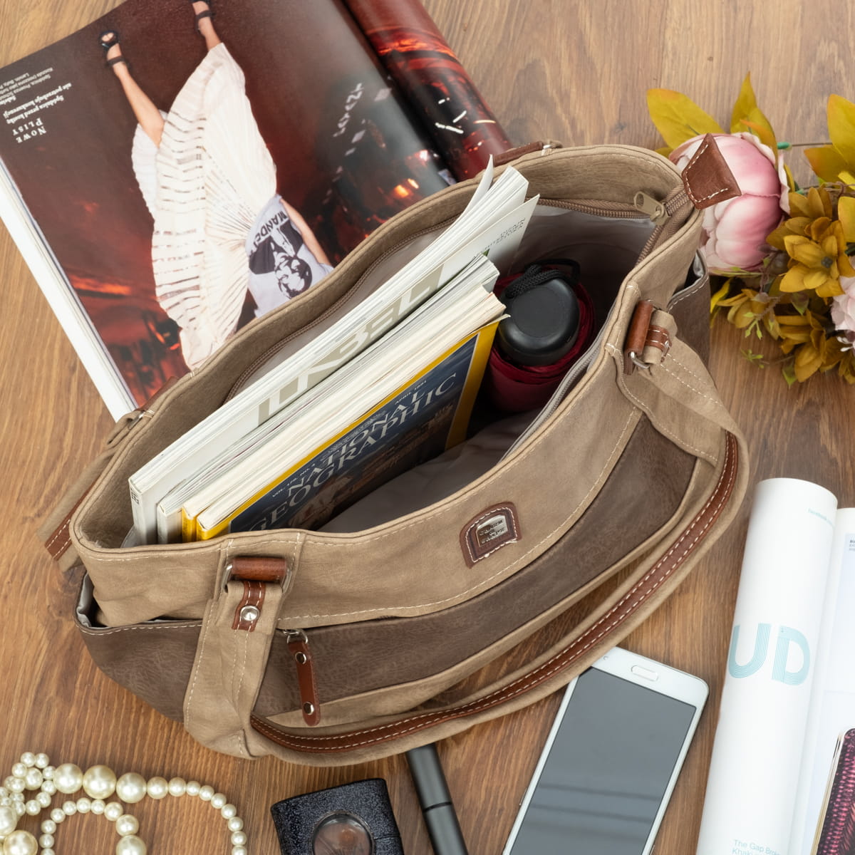 Torba damska wykonana ze miękkiej skóry ekologicznej wysokiej jakości.