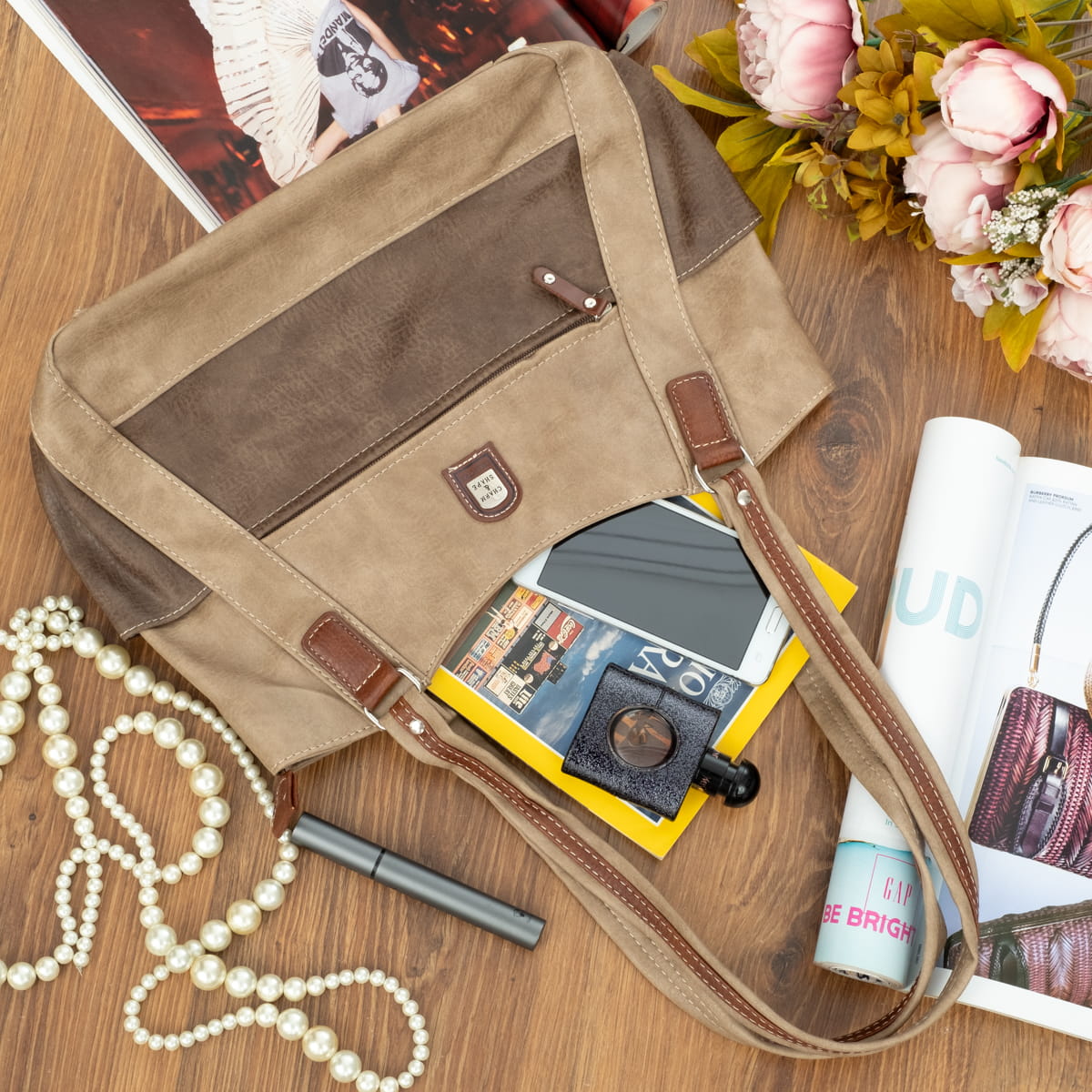 Średnia Torebka Damska Charm&Shape na ramię Beżowa-15181C