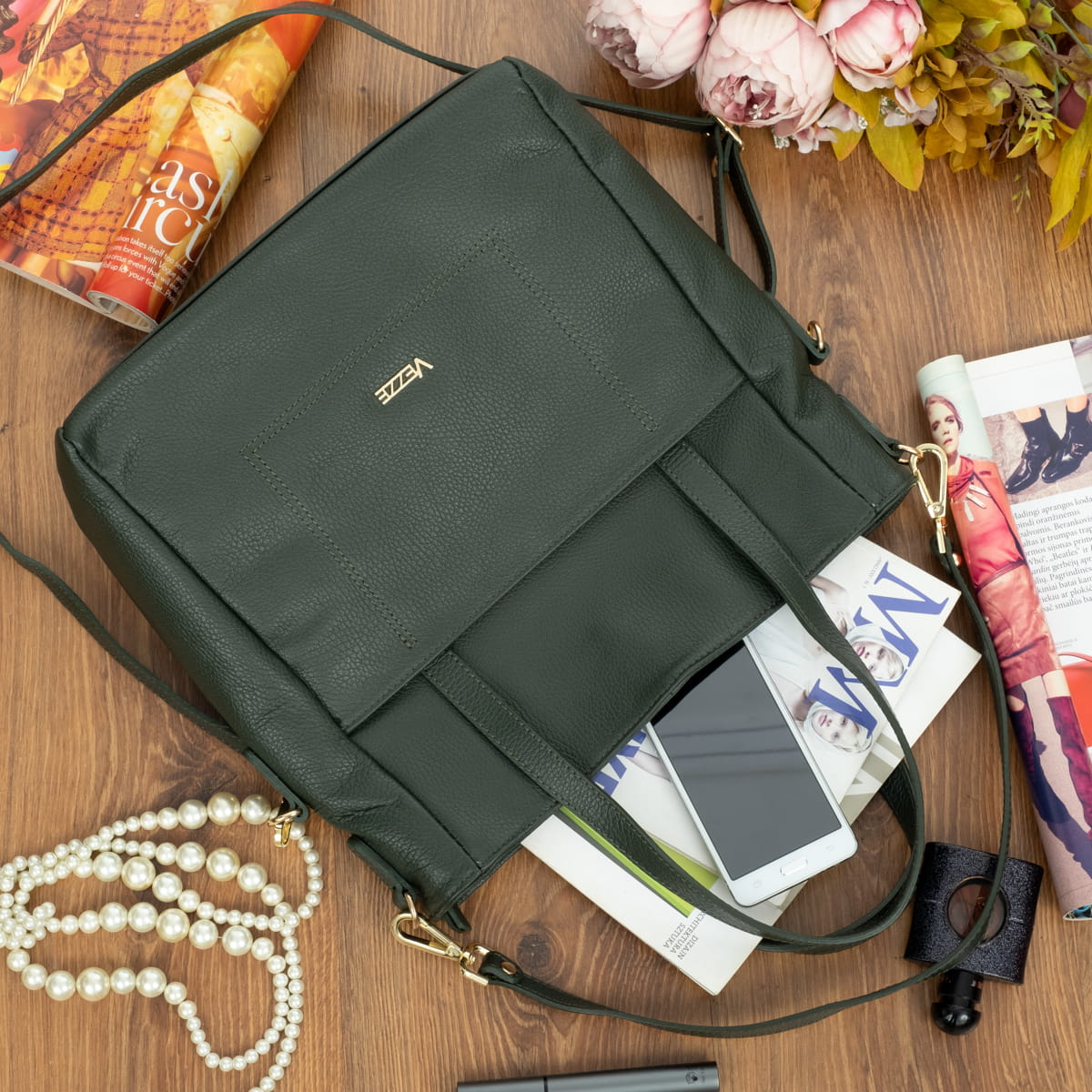 Torba Damska Skórzana Vezze Taliana Butelkowa-VEZ072-DG