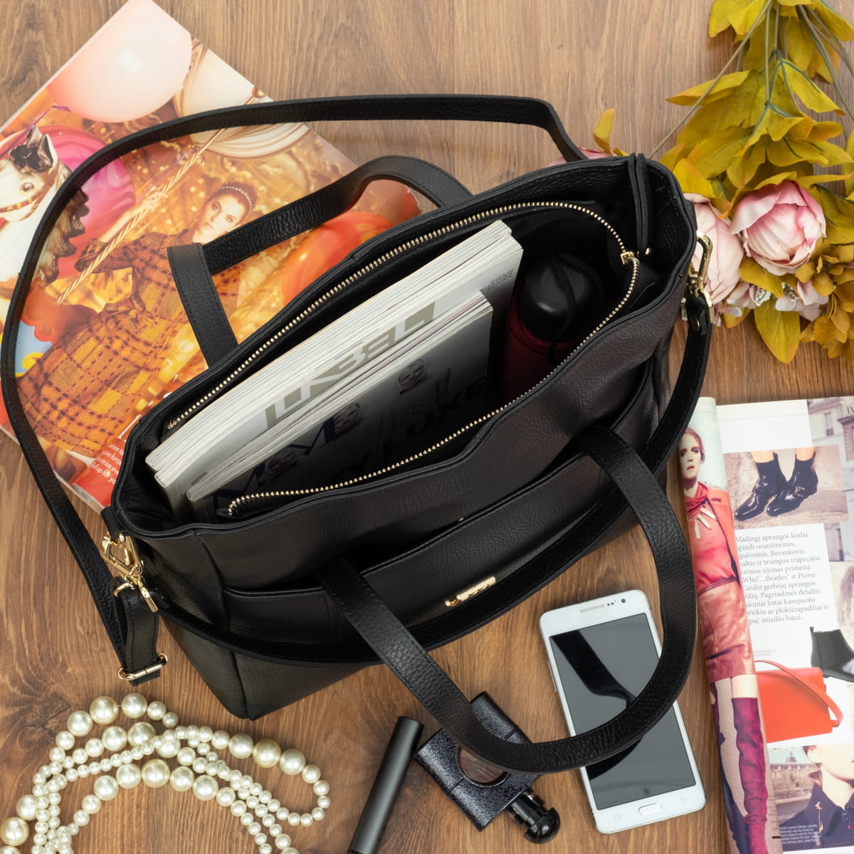 Pojemna torba damska wykonana z wysokogatunkowej naturalnej włoskiej skóry licowej. Z wygodnymi skórzanymi uchwytami i odpinanym paskiem.