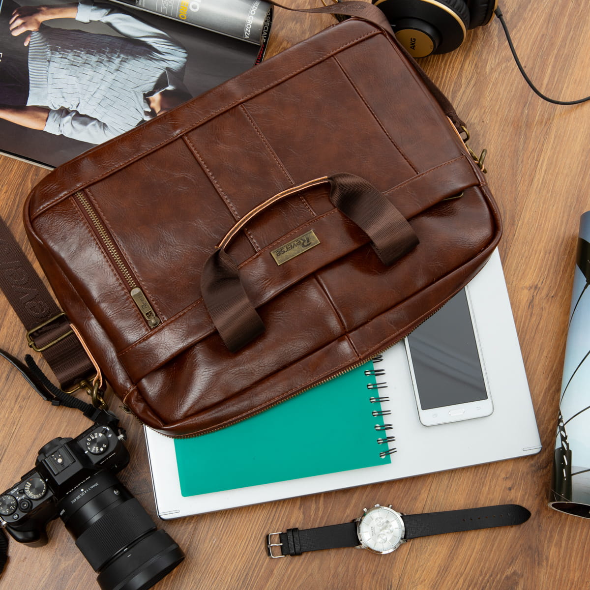 Torba Skórzana Reverse na Laptop 15.6 Brązowa-R2033-1-BRN