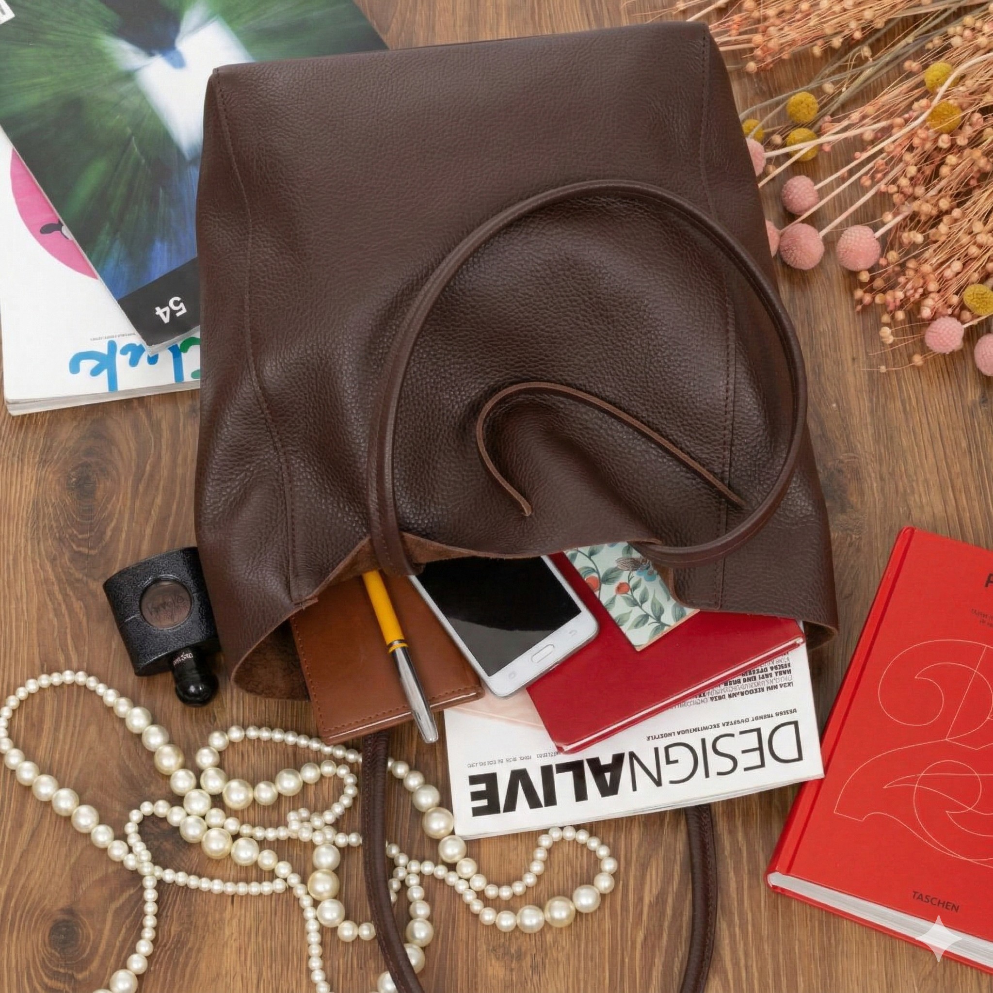 Pojemna włoska torba damska z usztywnianym dnem. Wykonana z wysokogatunkowej, naturalnej skóry licowej. Dzięki zastosowaniu grubej skóry torba jest mocna i nieprzemakalna. Z dużym zapasem zmieszczą się w niej przedmioty formatu A4. Praktycznym dodatkiem jest, zamykana na suwak, wewnętrzna kieszeń na drobiazgi.
