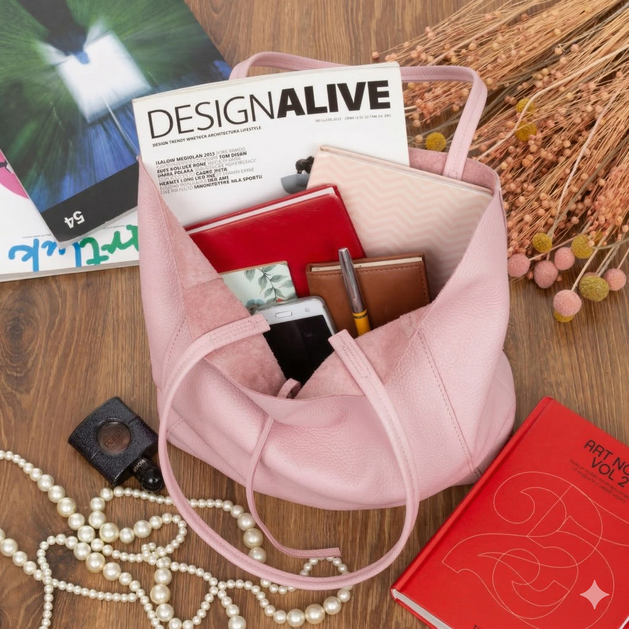 Pojemna włoska torba damska z usztywnianym dnem. Wykonana z wysokogatunkowej, naturalnej skóry licowej. Dzięki zastosowaniu grubej skóry torba jest mocna i nieprzemakalna. Z dużym zapasem zmieszczą się w niej przedmioty formatu A4. Praktycznym dodatkiem jest, zamykana na suwak, wewnętrzna kieszeń na drobiazgi.
