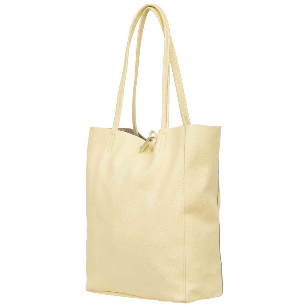 Pojemna włoska torba damska z usztywnianym dnem. Wykonana z wysokogatunkowej, naturalnej skóry licowej. Dzięki zastosowaniu grubej skóry torba jest mocna i nieprzemakalna. Z dużym zapasem zmieszczą się w niej przedmioty formatu A4. Praktycznym dodatkiem jest, zamykana na suwak, wewnętrzna kieszeń na drobiazgi.