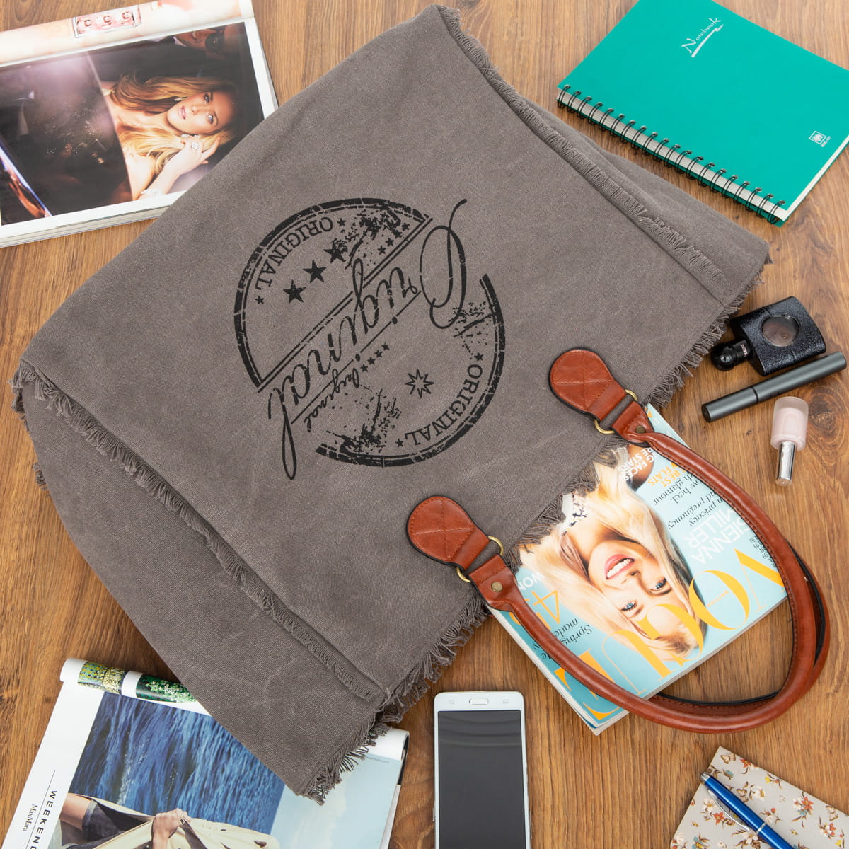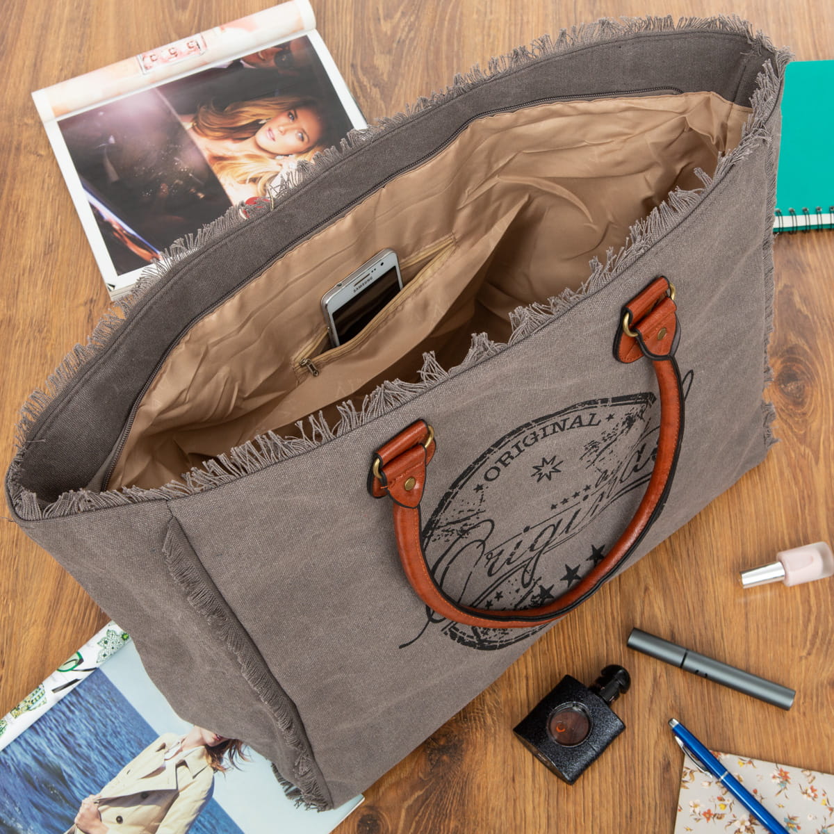 Torba Weekendowa Plażowa Shopperka Vivi Paris Grafitowa-10903-AN20-DGRAY