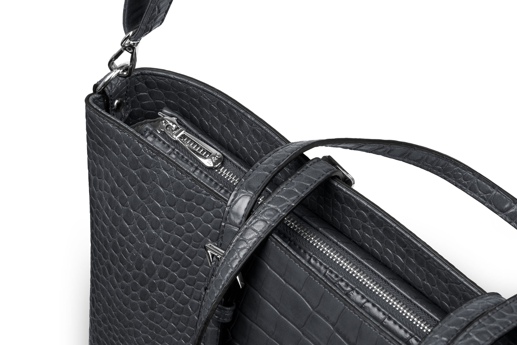 Klasyczna torebka uszyta z ekologicznej skóry syntetycznej. Charakterystyczny wzór skóry krokodyla wytłoczony na powierzchni torebki nadaje jej wyjątkowego i luksusowego sznytu.