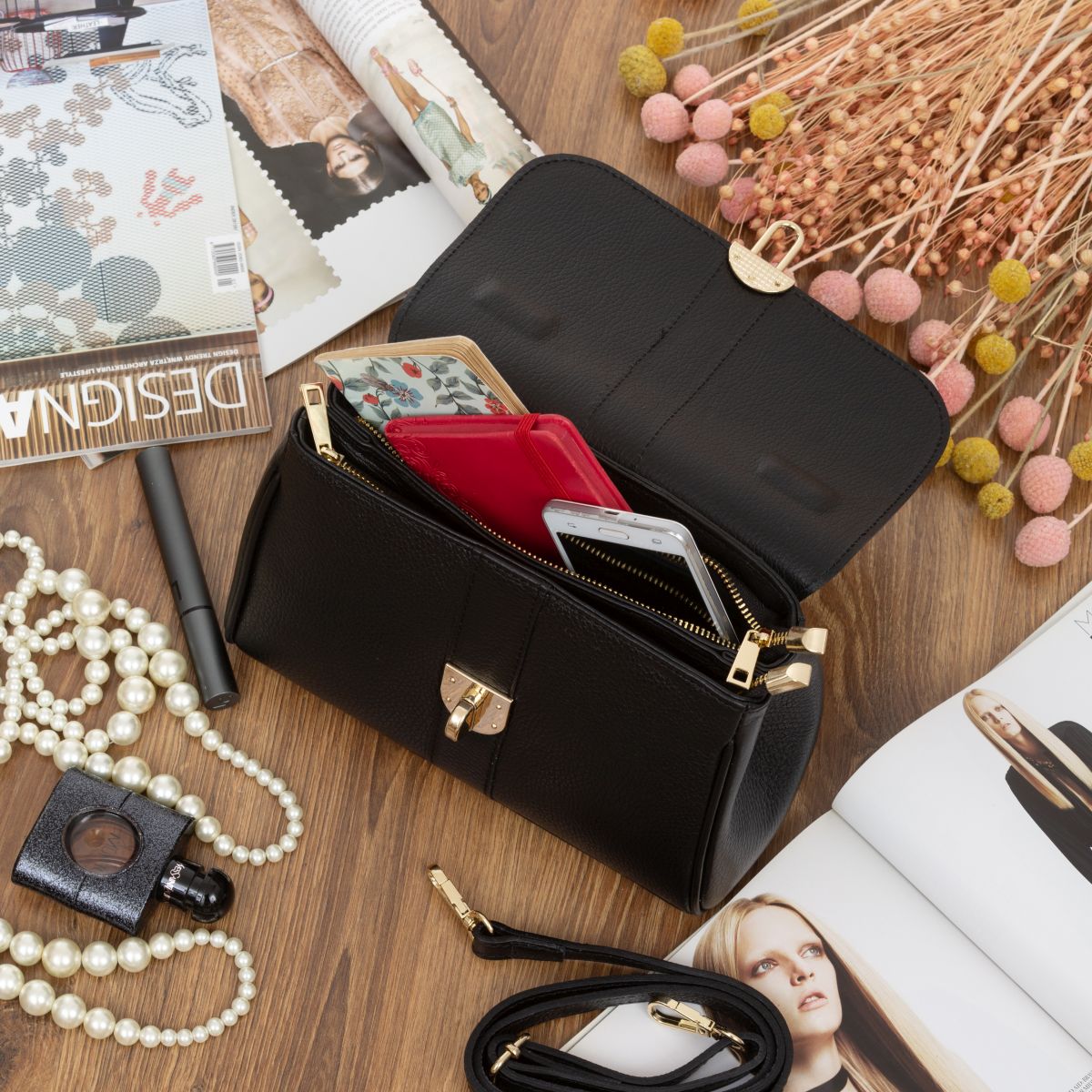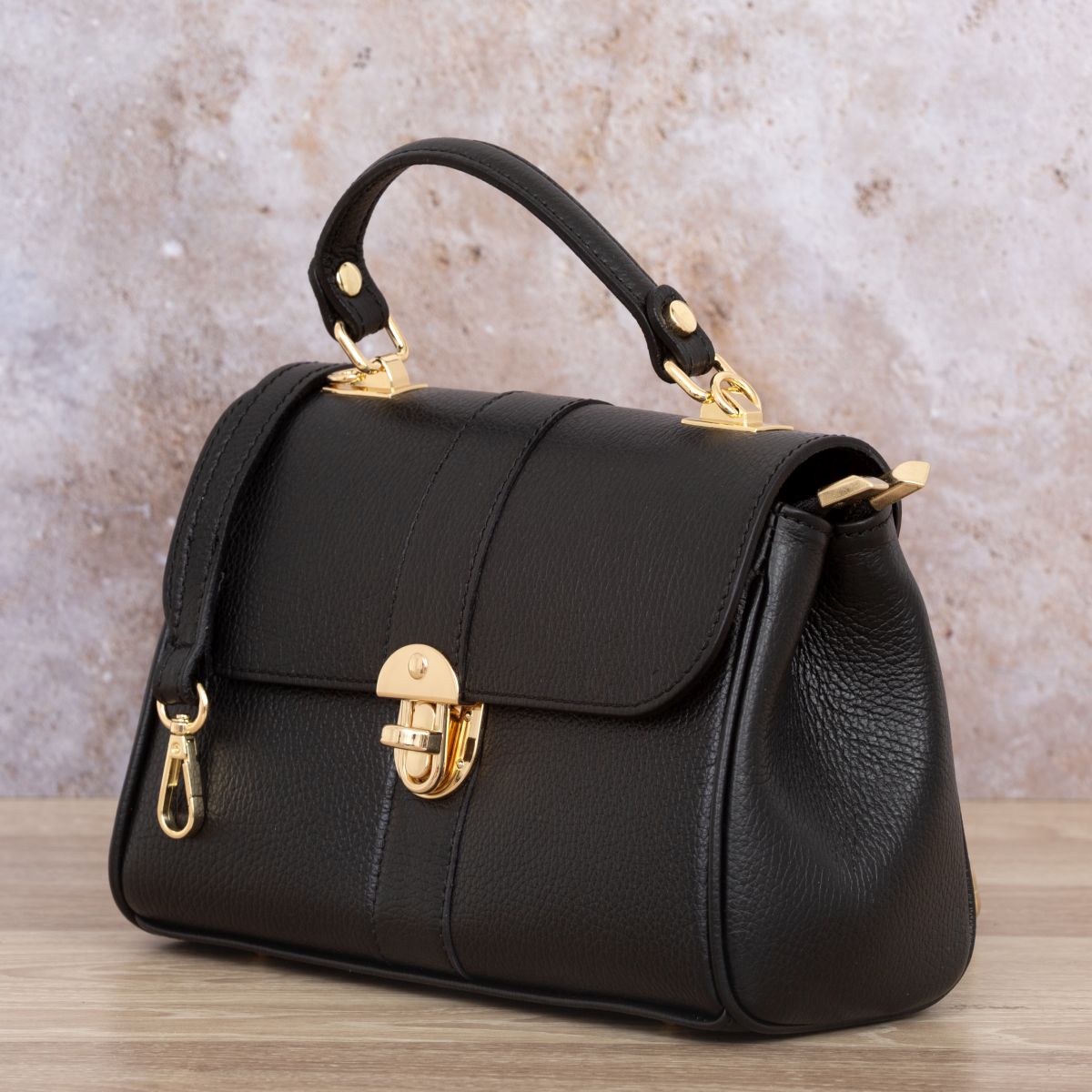 Torebka Damska Na Ramię Do Ręki Skórzana Vera Pelle Giovita Czarna-VPL0012-B