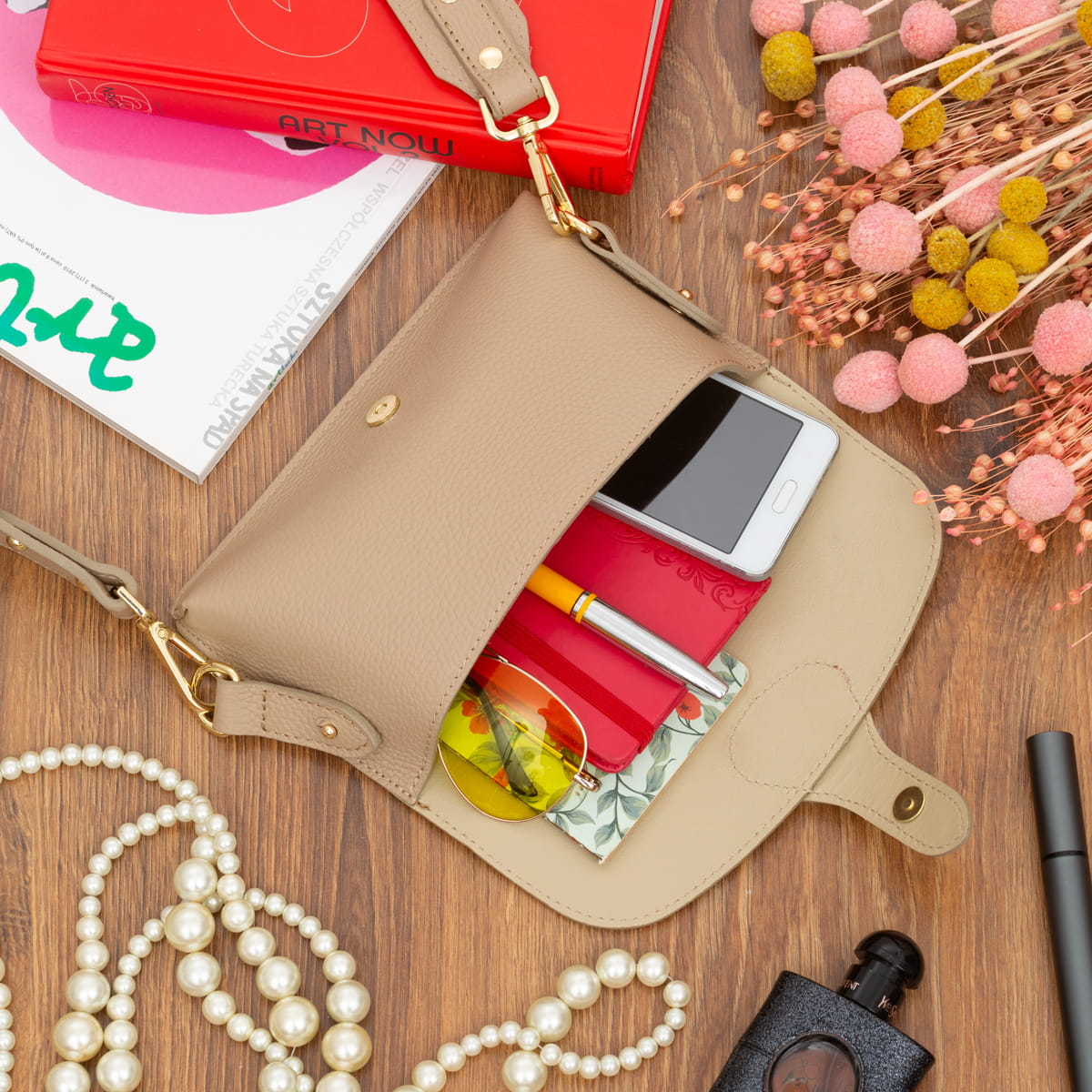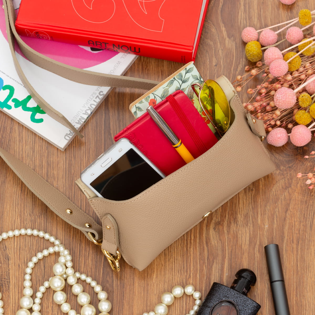 Torebka Damska Skórzana Vera Pelle Imba Beżowa-VPL0023-BE