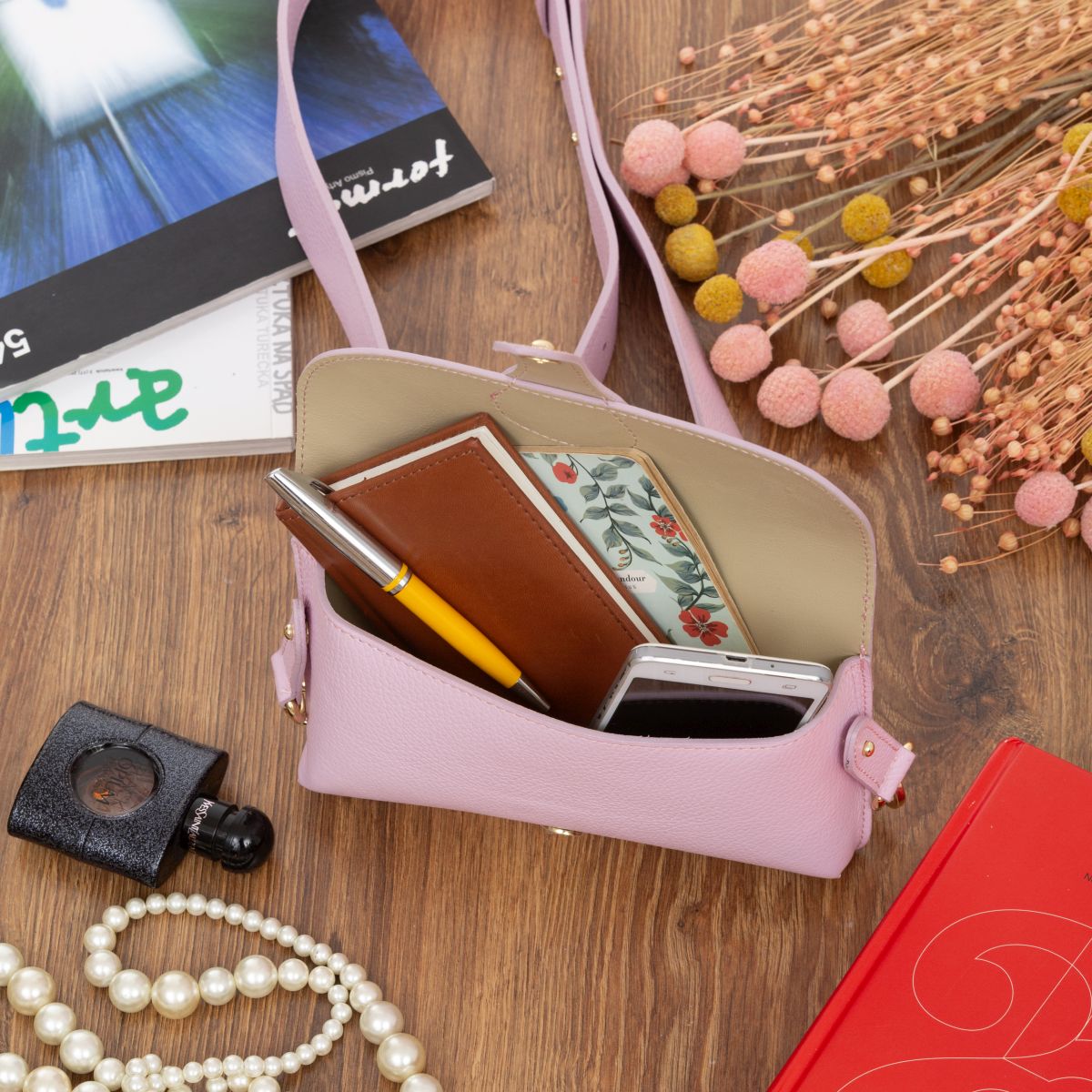Torebka Damska Skórzana Vera Pelle Imba Różowa-VPL0023-P