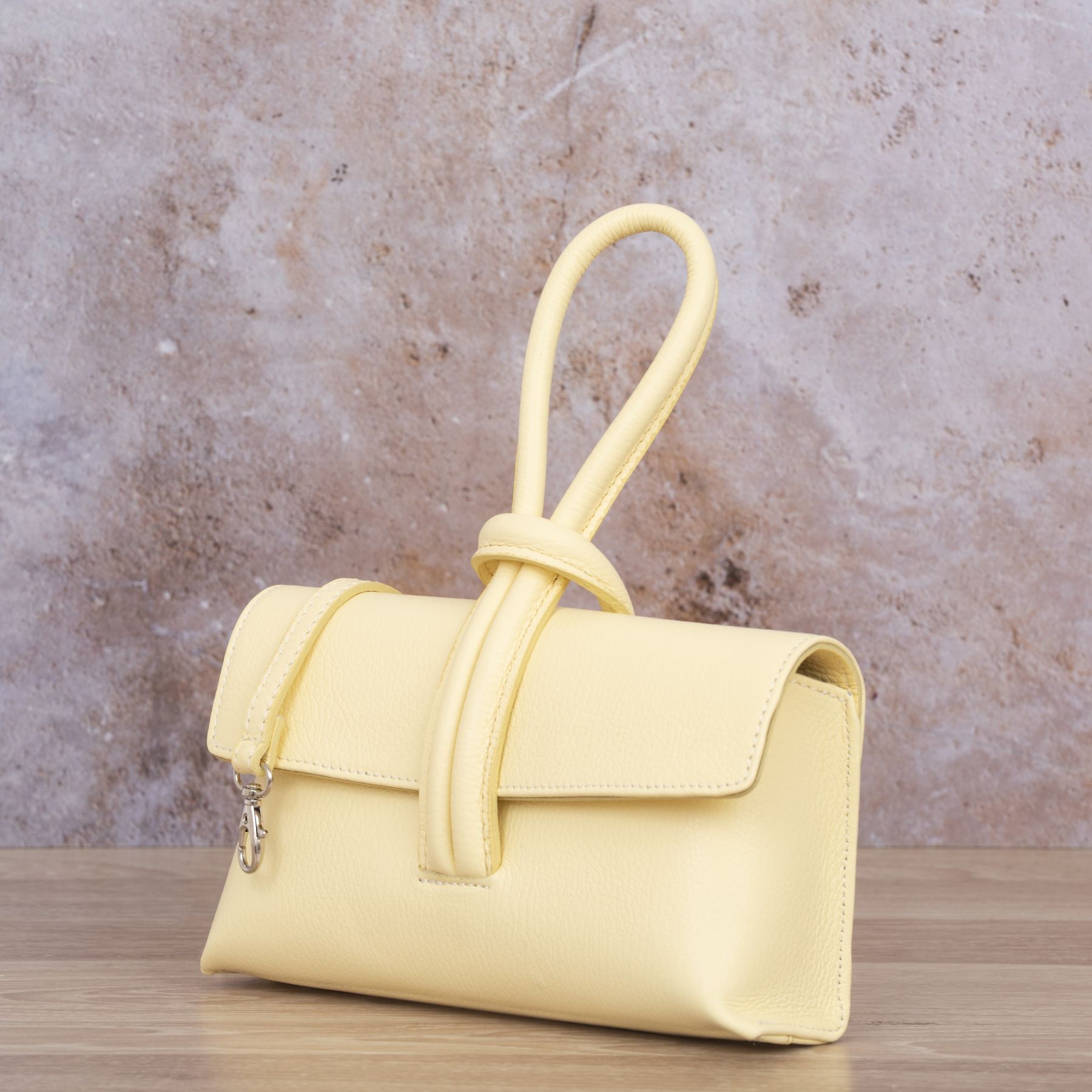 Torebka Damska Skórzana Vera Pelle Nodo Żółta-VPL0028-Y
