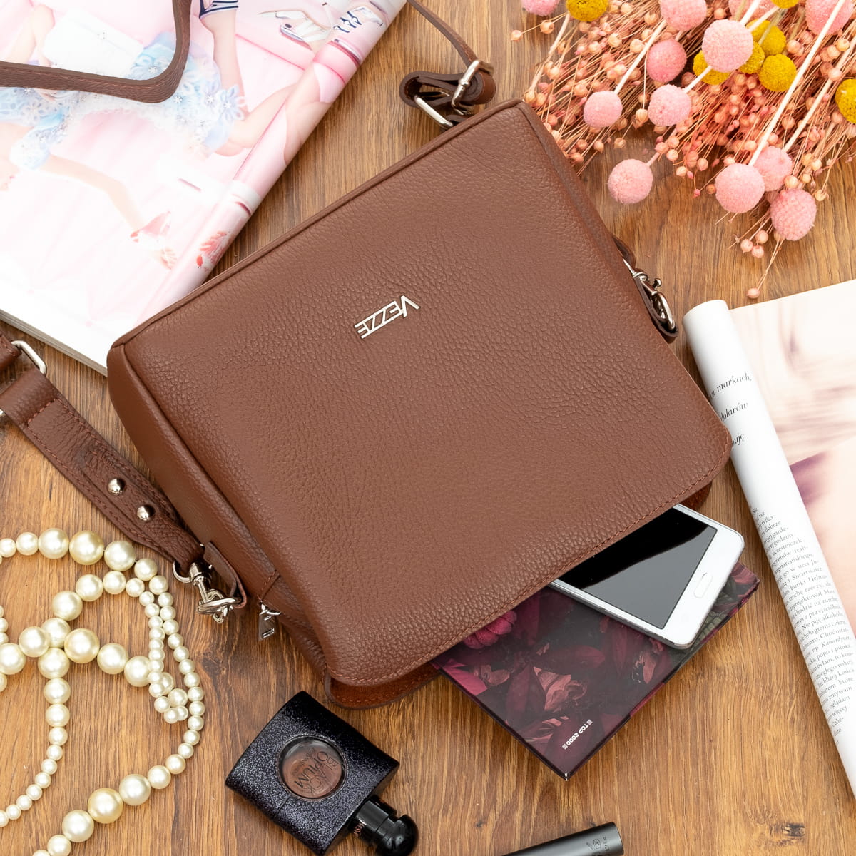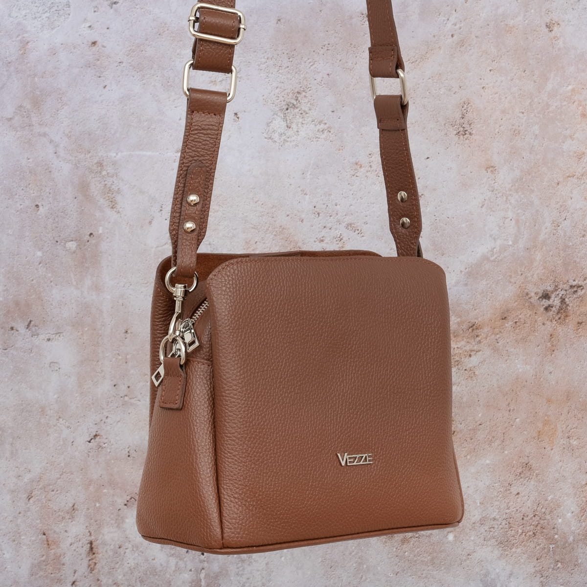 Torebka Damska Skórzana Vezze Golia Brązowa-VEZ040-BRN