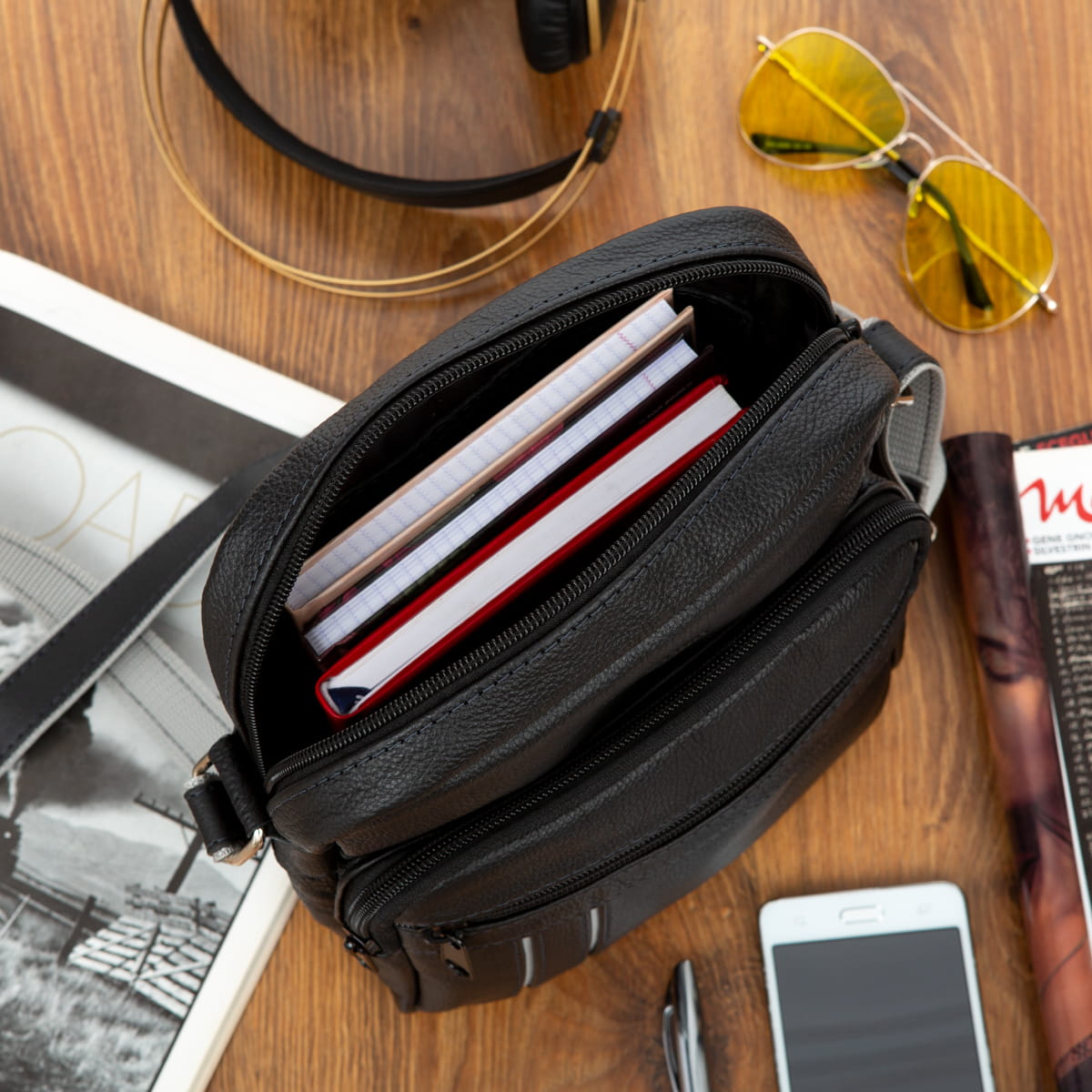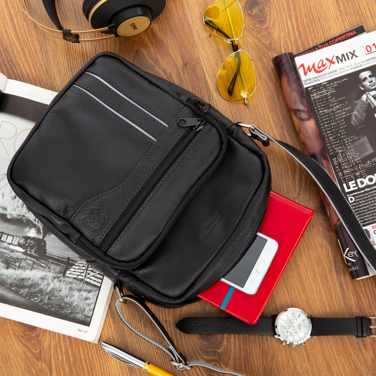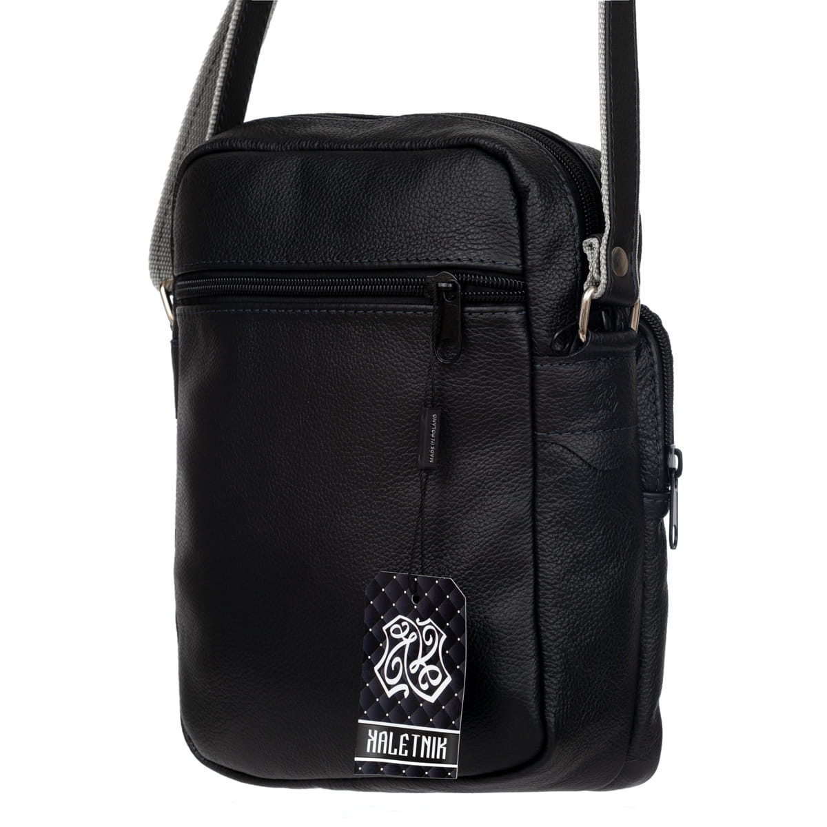 Męska torebka Kaletnik Omen wykonana z naturalnej skóry licowej. Dwie komory i pięć kieszeni w różnych rozmiarach pozwala wygodnie posegregować rzeczy w torebce. Przystosowana do noszenia na ramieniu.