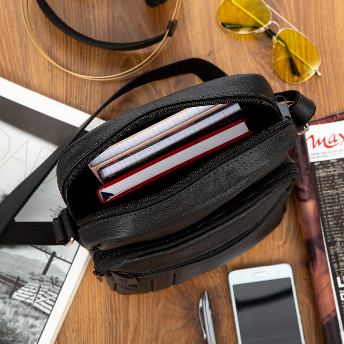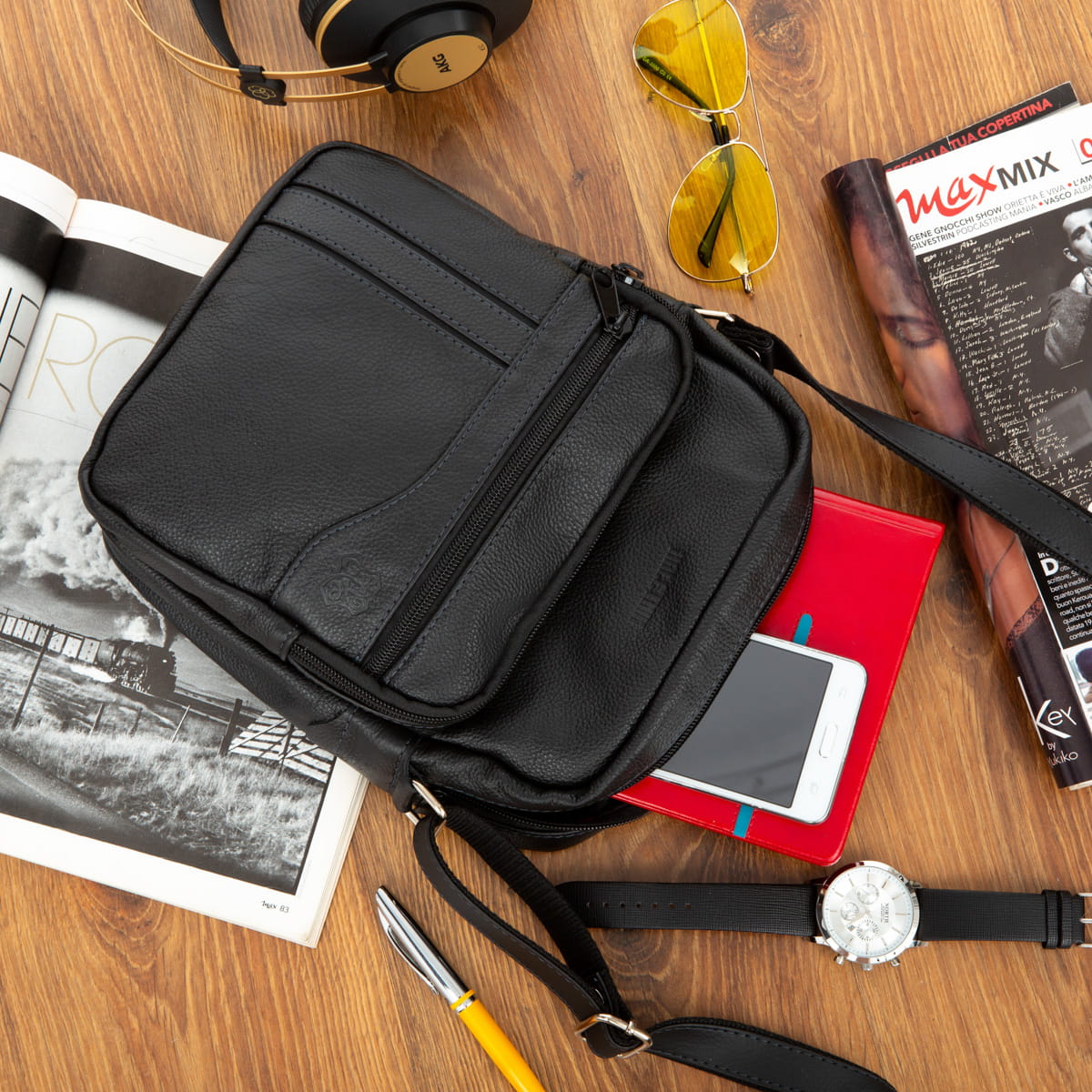 Męska torebka Kaletnik Omen wykonana z naturalnej skóry licowej. Dwie komory i pięć kieszeni w różnych rozmiarach pozwala wygodnie posegregować rzeczy w torebce. Przystosowana do noszenia na ramieniu.