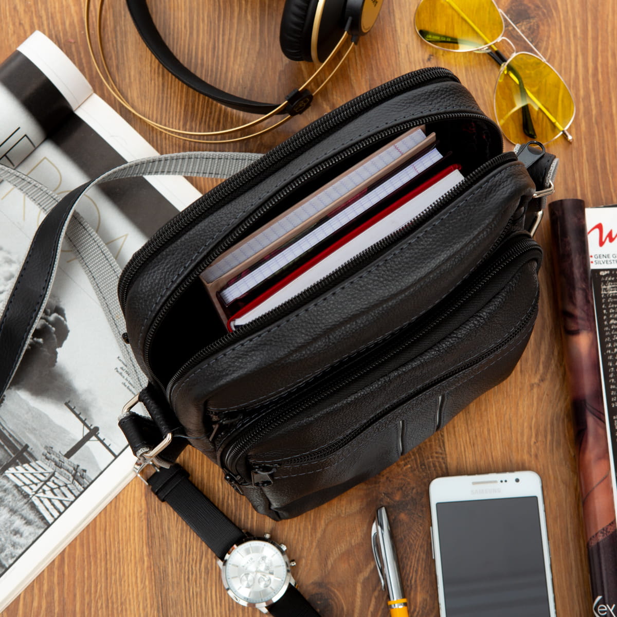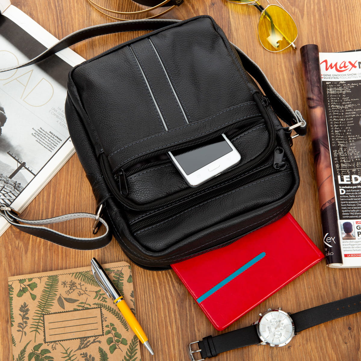 Męska torebka Kaletnik Oryl wykonana z naturalnej skóry licowej. Trzy komory i sześć kieszeni w różnych rozmiarach pozwala wygodnie posegregować rzeczy w torebce. Przystosowana do noszenia na ramieniu.