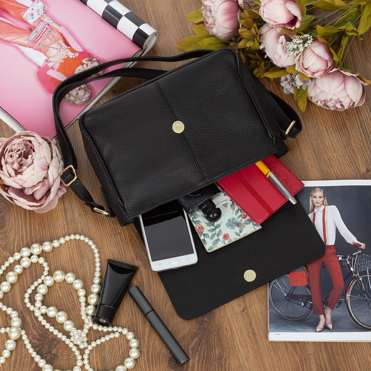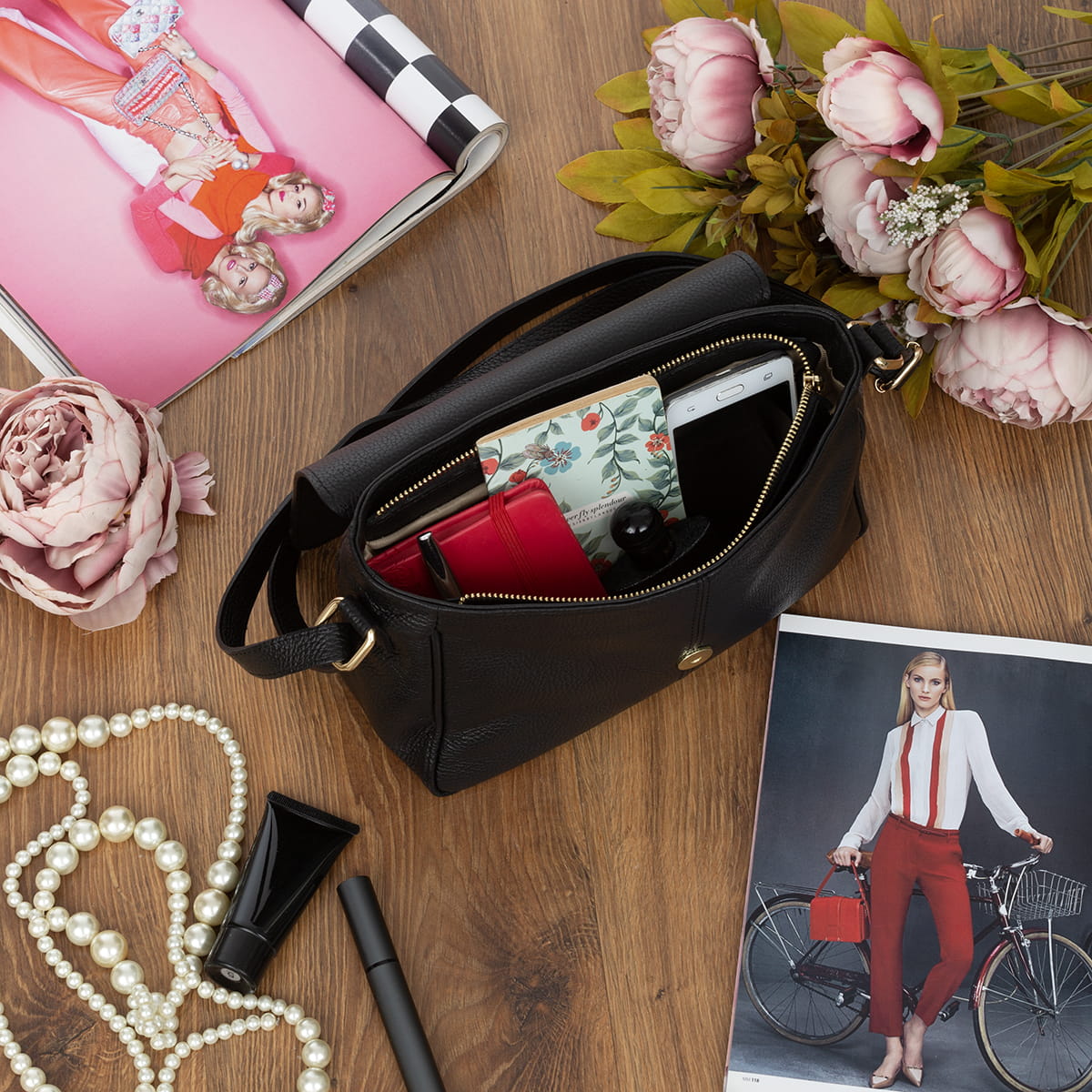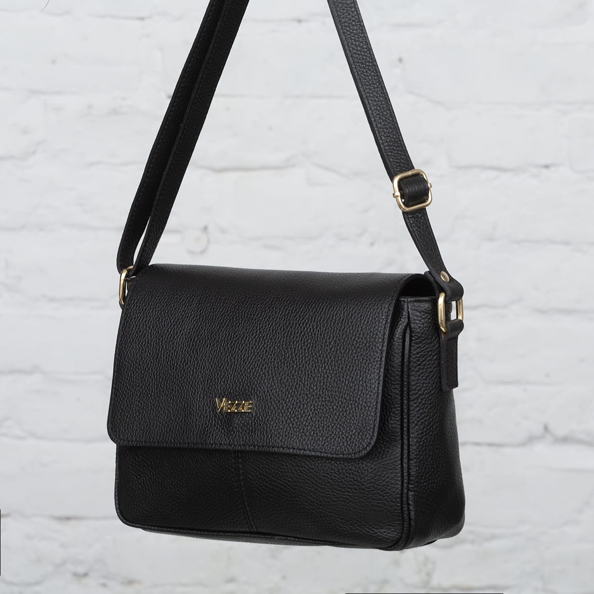 Torebka Na Ramię Skórzana Vezze Bafta Czarna-VEZ069-B