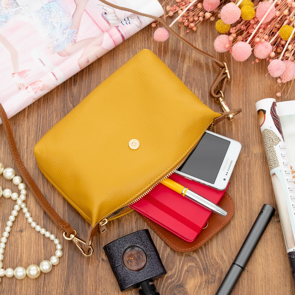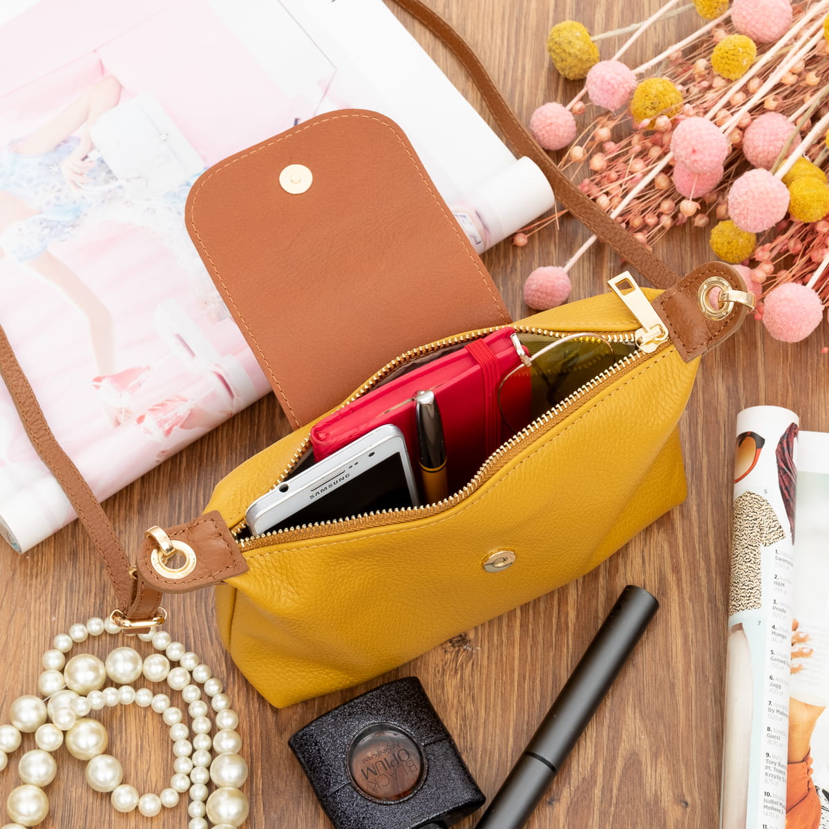 Torebka Skórzana Damska Vera Pelle Mattina Szafranowa-VPL0025-SAF