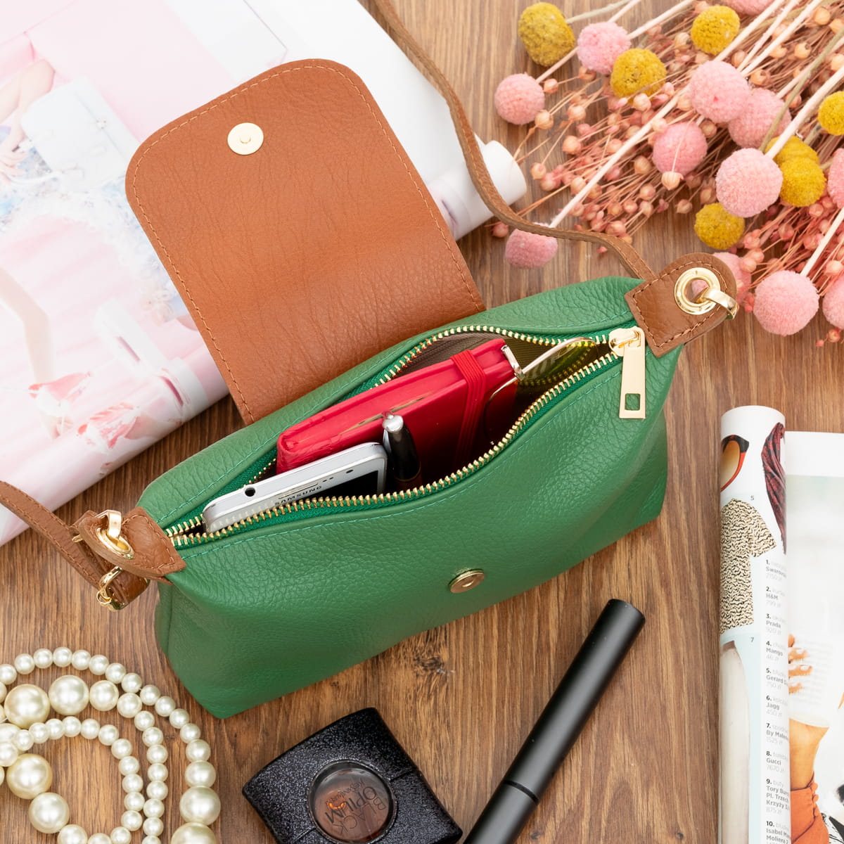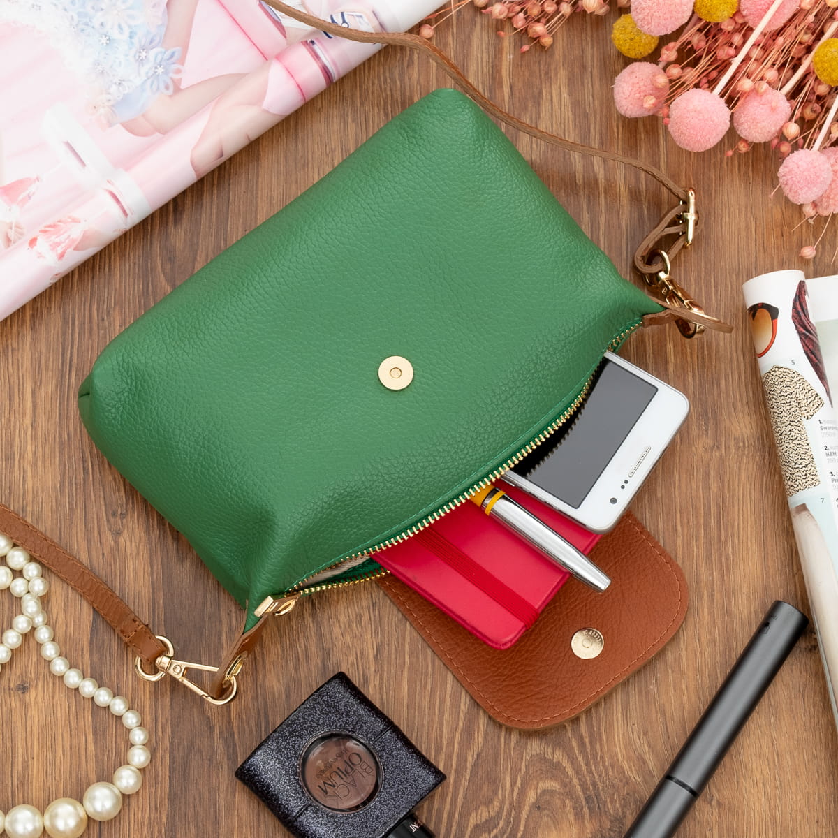 Torebka Skórzana Damska Vera Pelle Mattina Trawiasta-VPL0025-GRASS