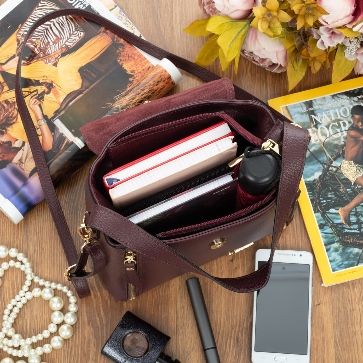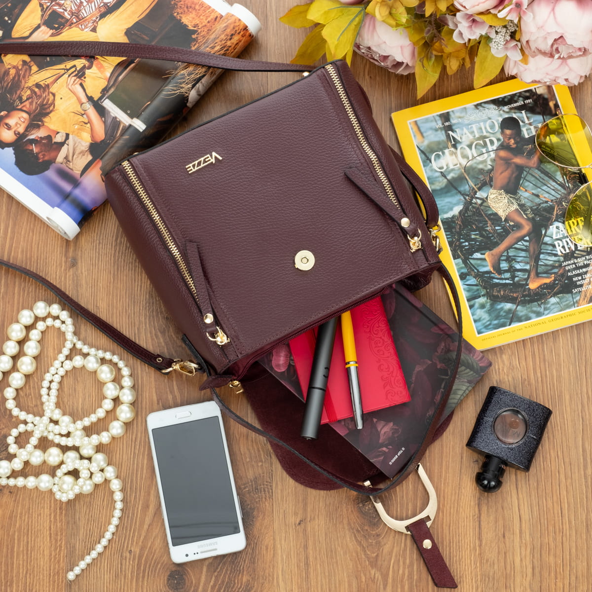 Torebka Skórzana Vezze Alveare Bordowa-VEZ008-DR