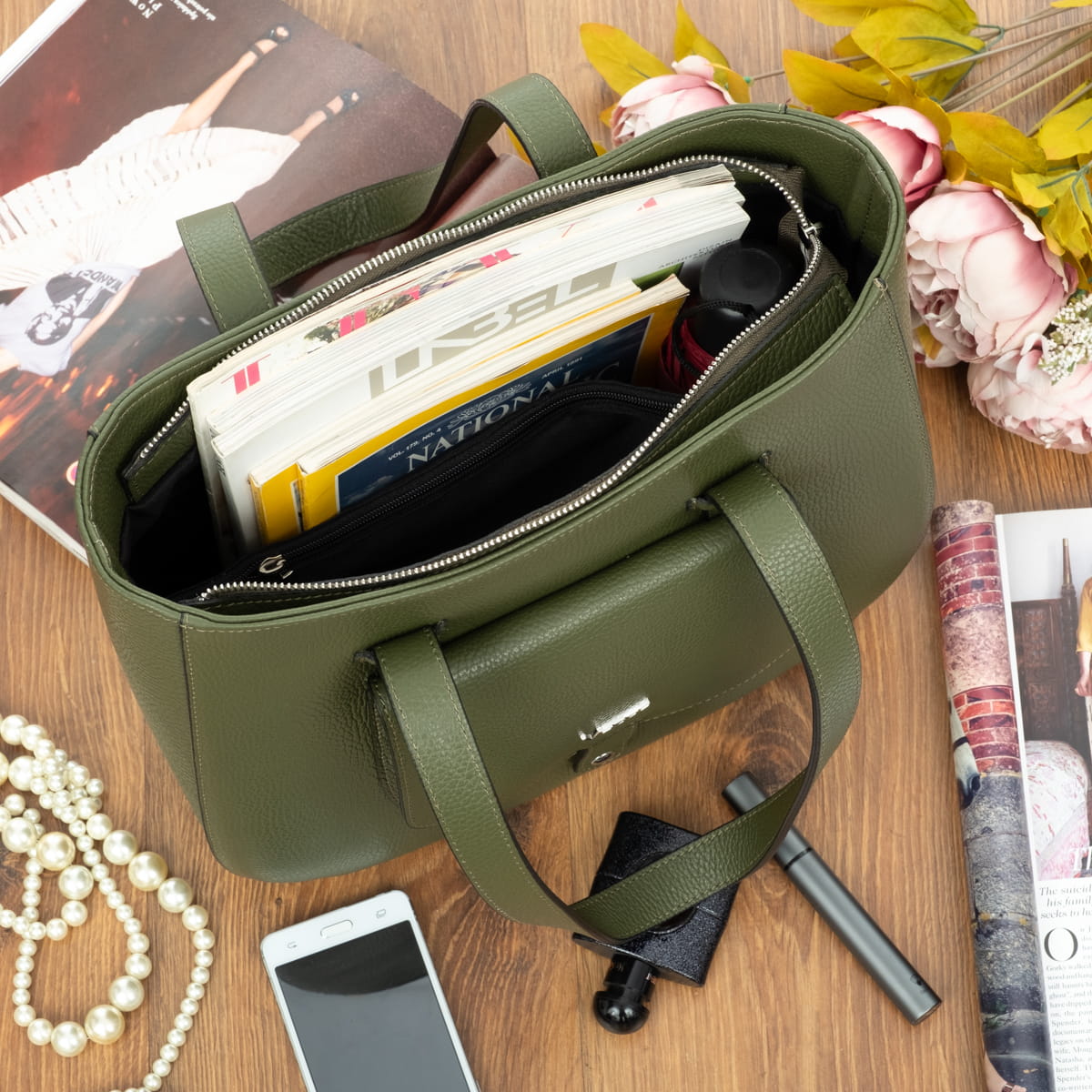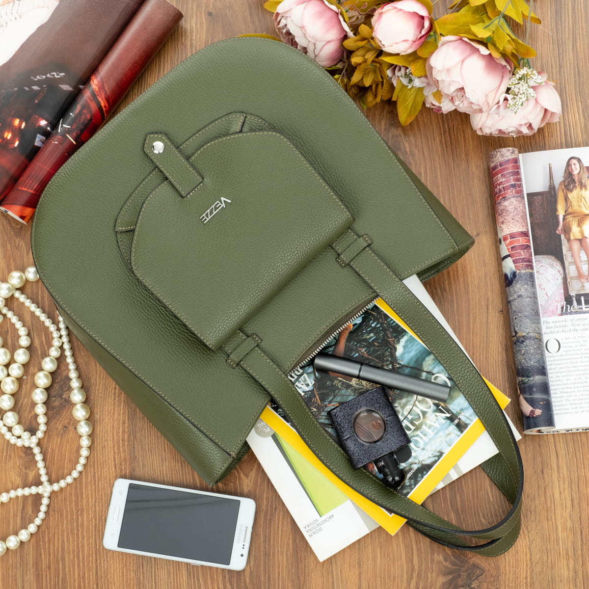 Torebka Skórzana Vezze Copertina Oliwka-VEZ033-OLI
