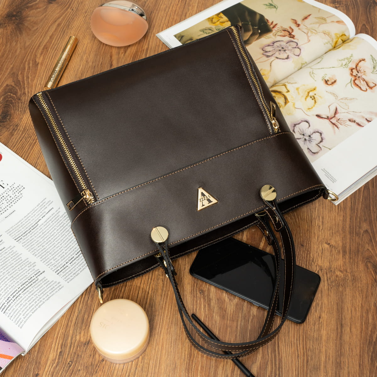- odpinany skórzany pasek na ramię
