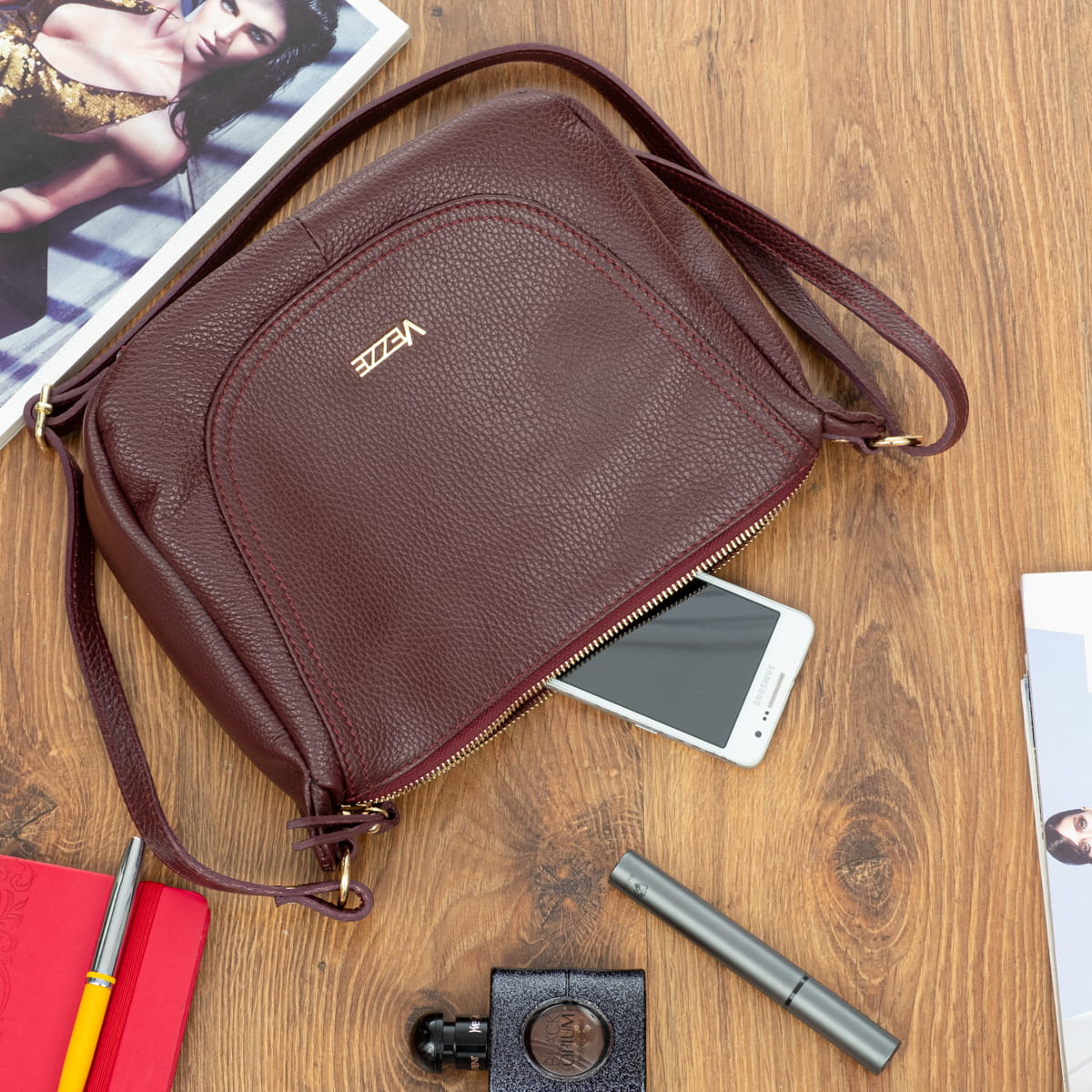 Torebka Skórzana Vezze Sella Bordowa-VEZ011-DR