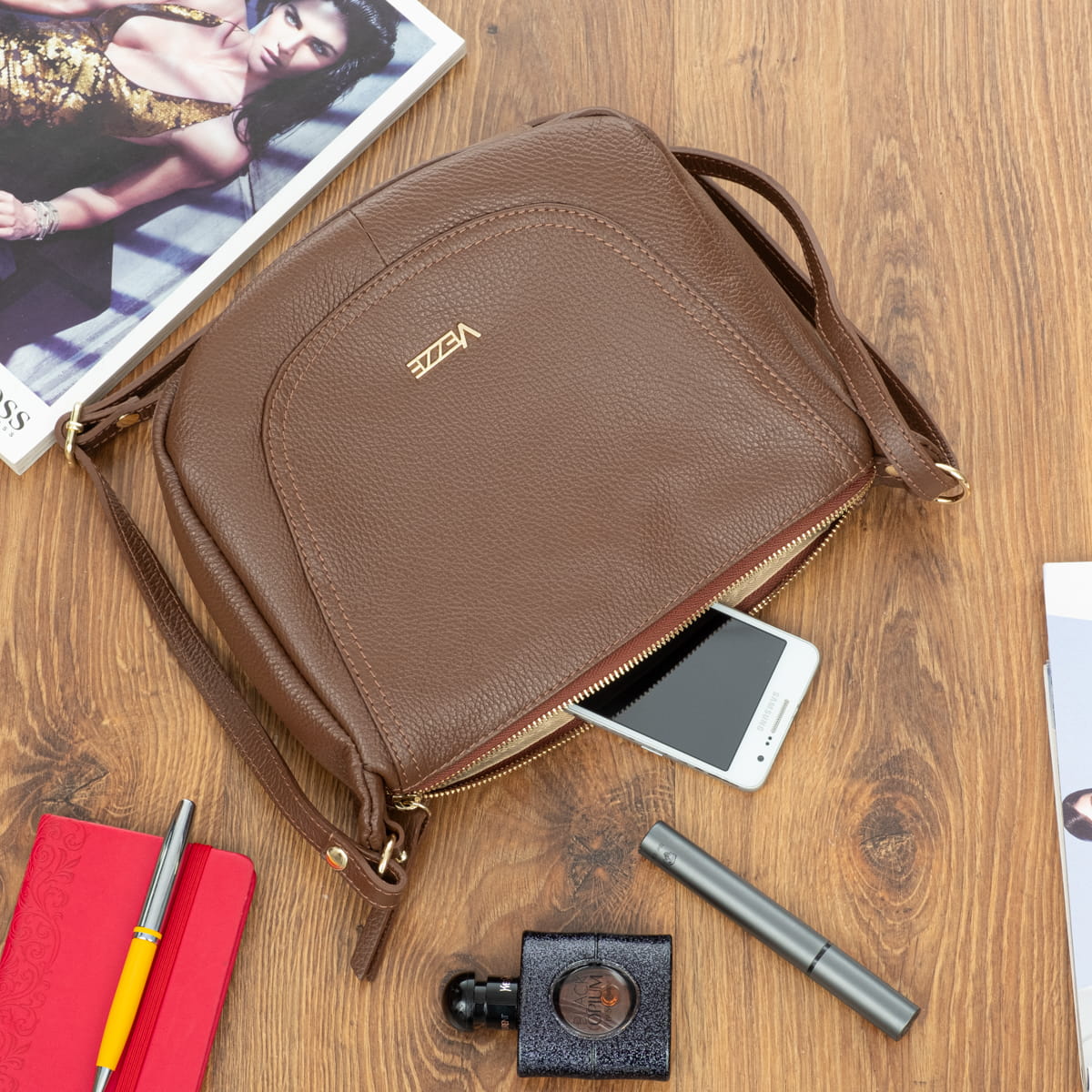 Torebka Skórzana Vezze Sella Choco-VEZ011-CHO