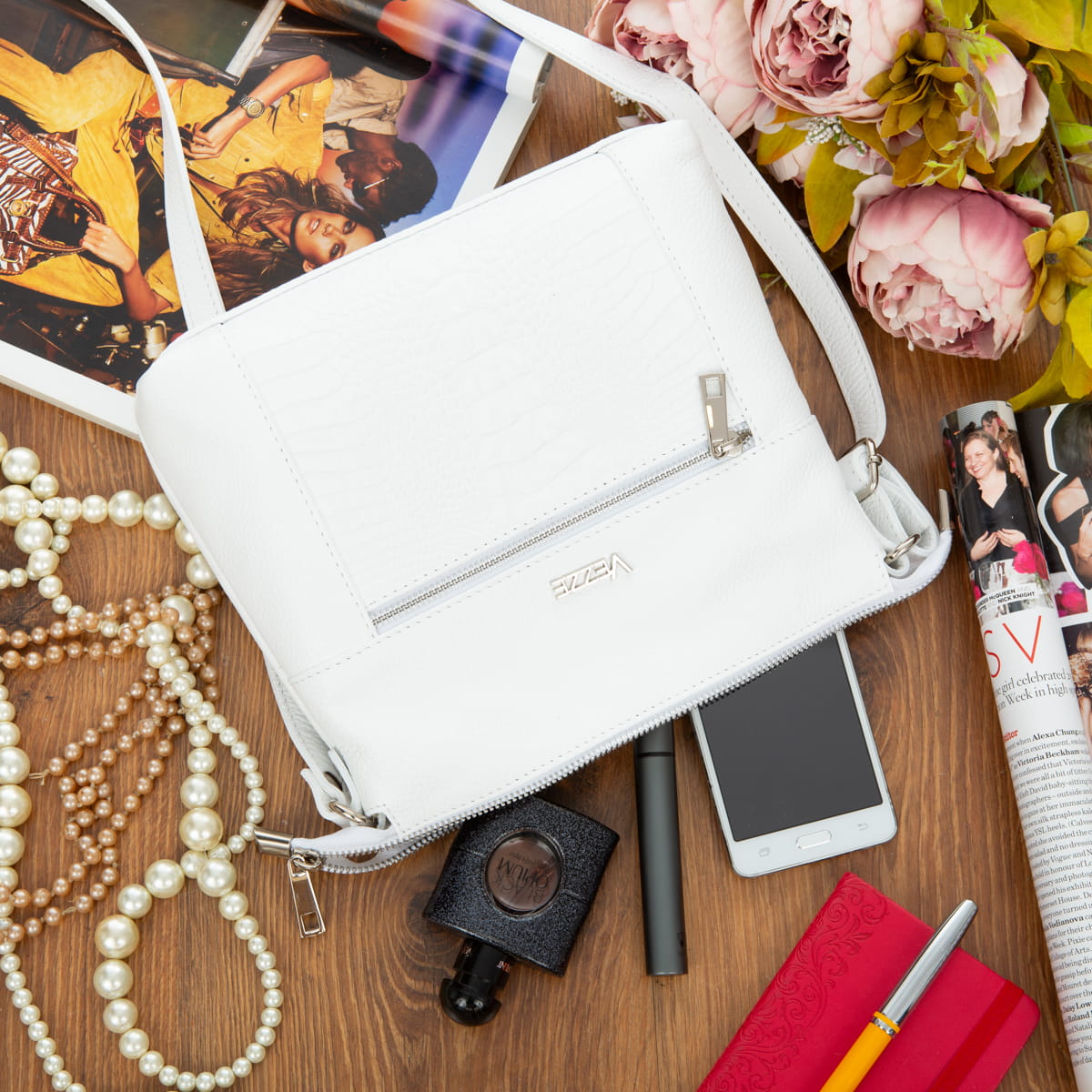 Torebka Skórzana Vezze Selvaggia Biała-VEZ007-W
