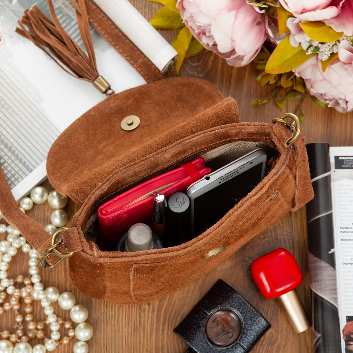 Wyjątkowa torebka z kolekcji Vera Pelle. Wykonana z wysokogatunkowej, naturalnej skóry zamszowej. Ma jedną komorę i dwie kieszenie.