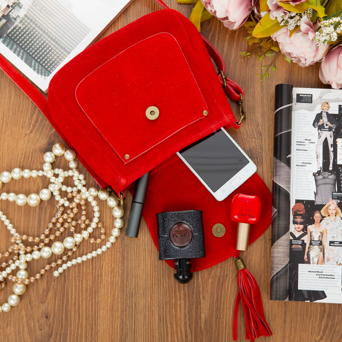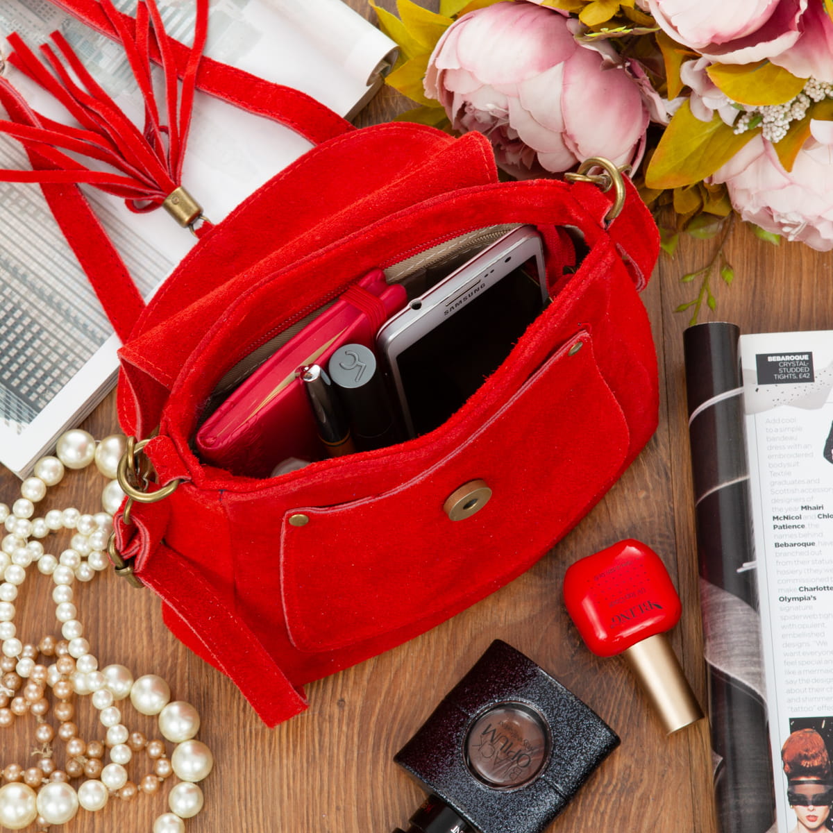 Torebka Skórzana Zamszowa Vera Pelle Vanita Czerwona-VPL0079-R