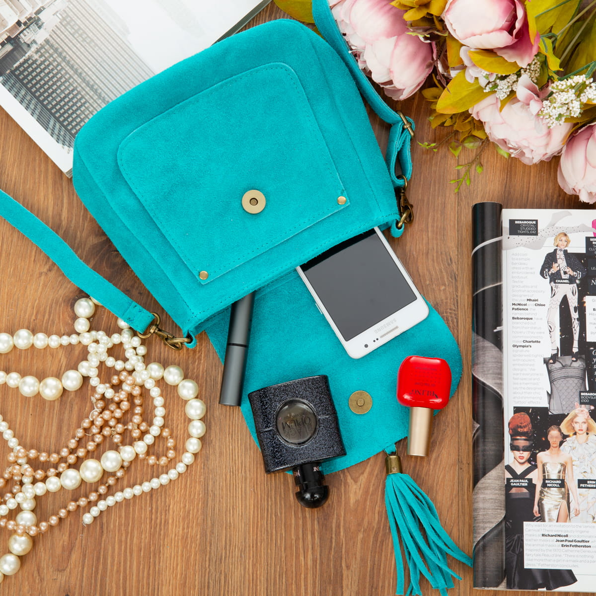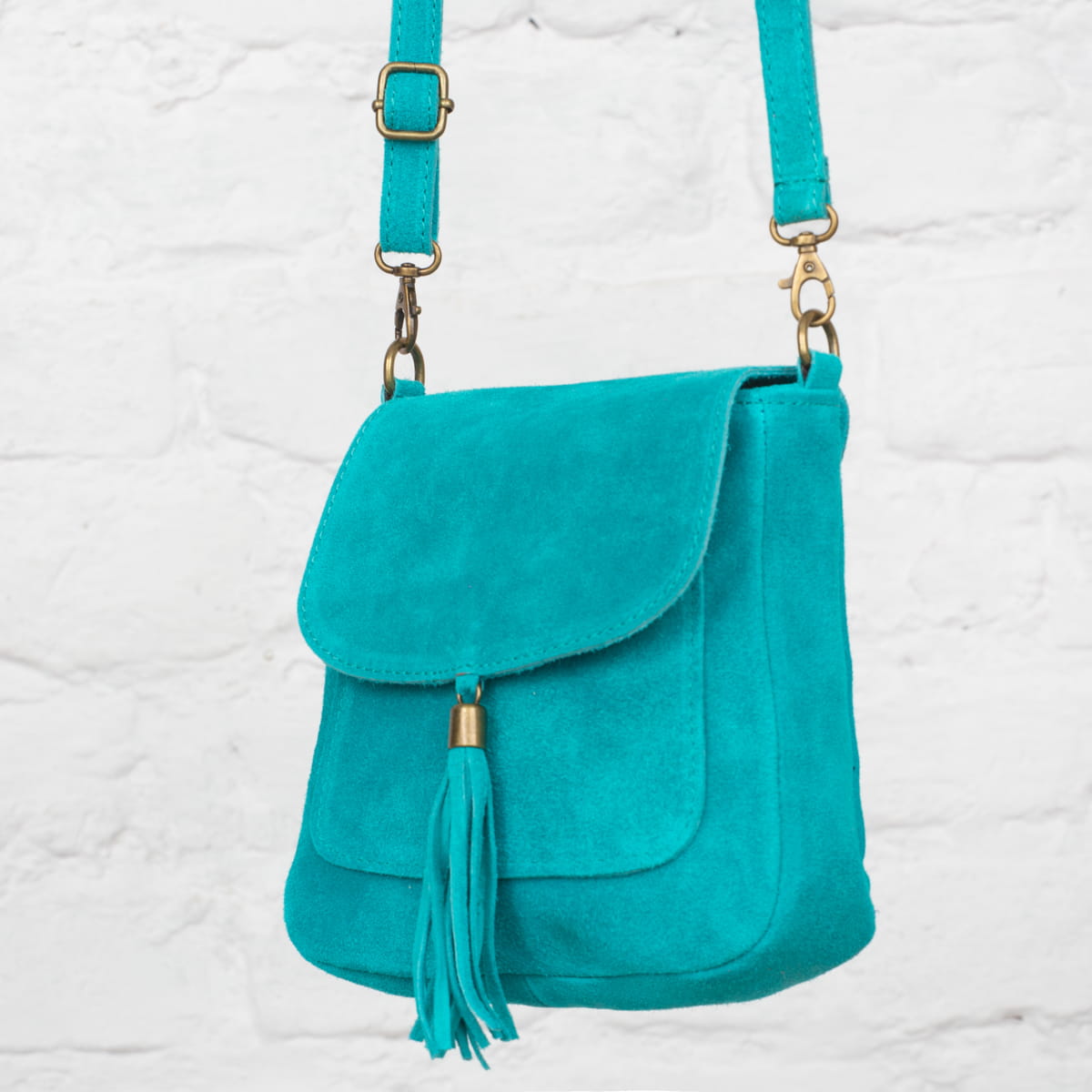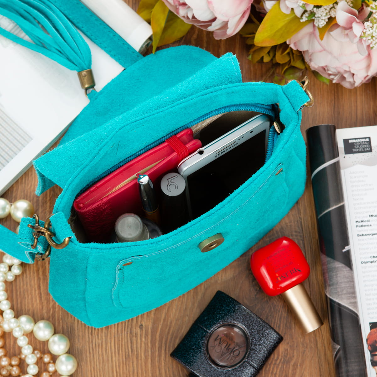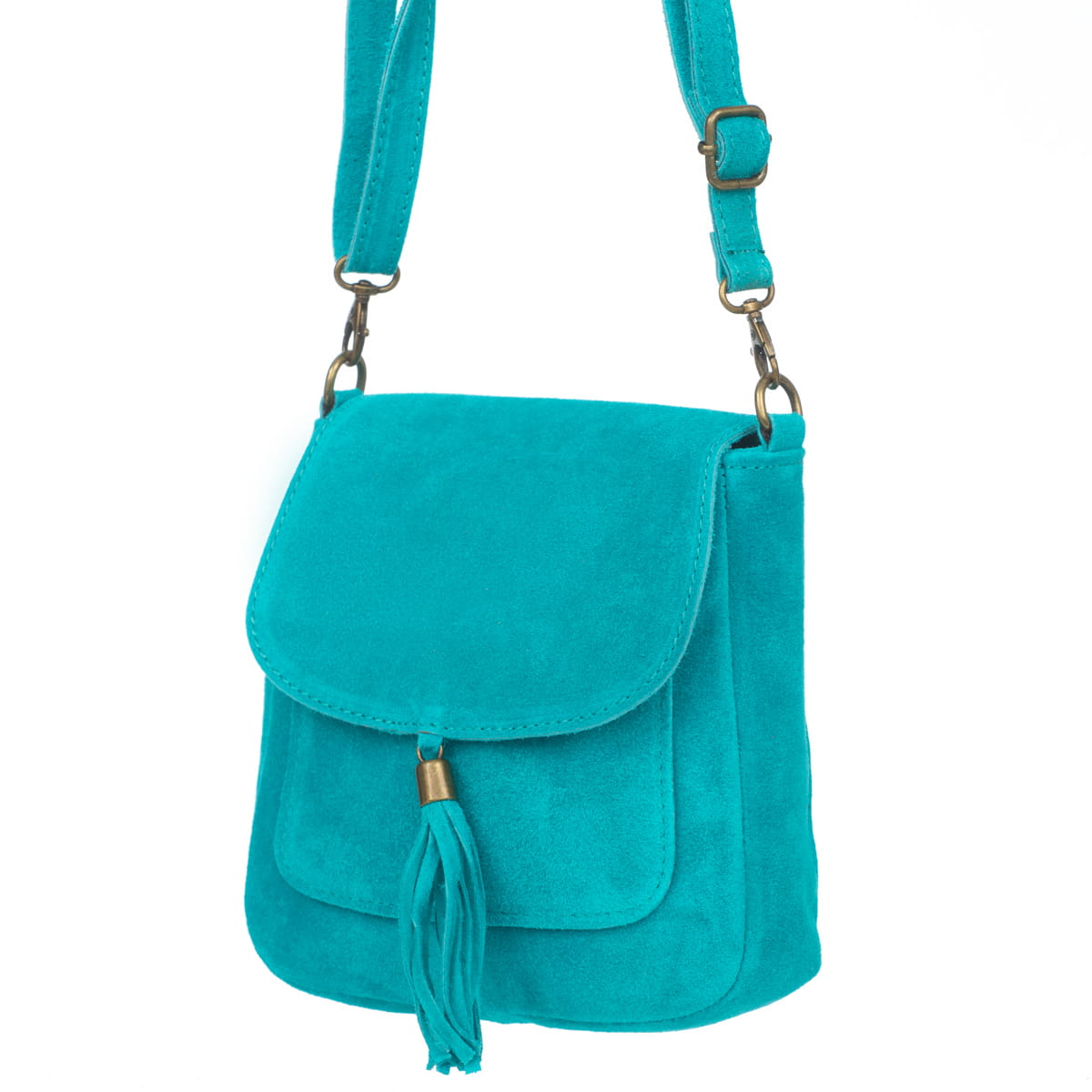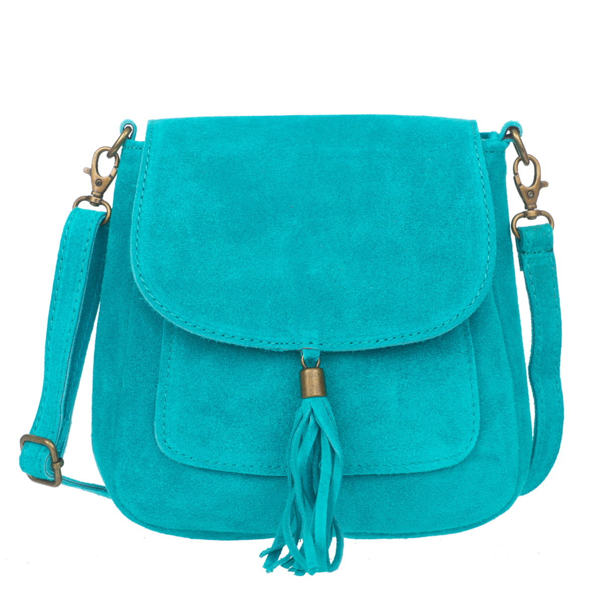 Torebka Skórzana Zamszowa Vera Pelle Vanita Turkusowa-VPL0079-TRQ