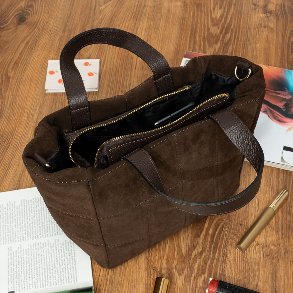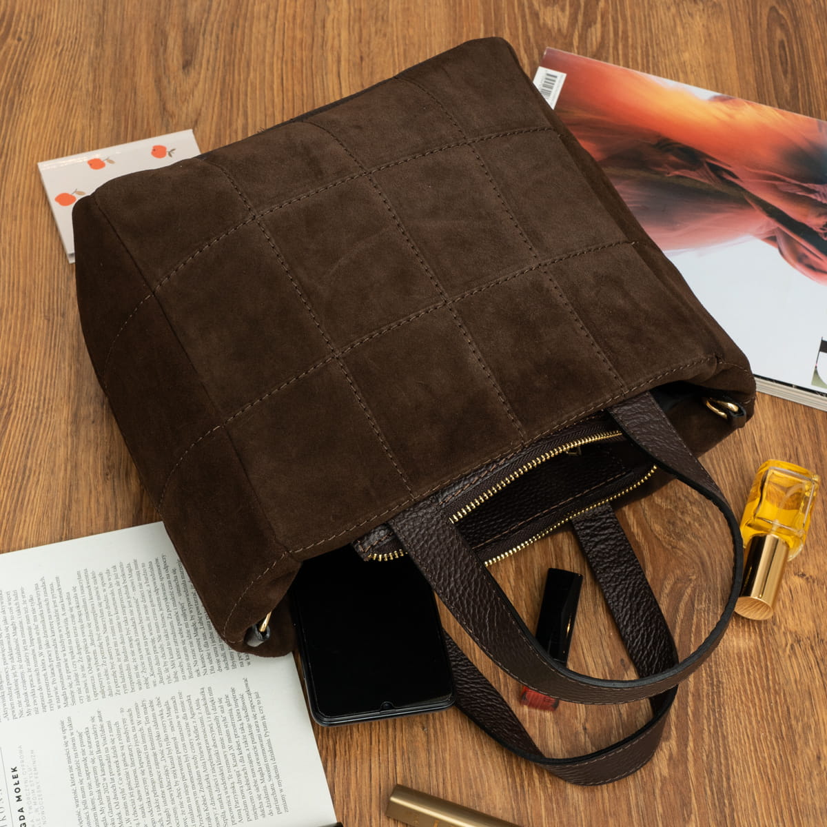 Torebka Zamszowa Vezze Piatto Choco-VEZ024-DBRN
